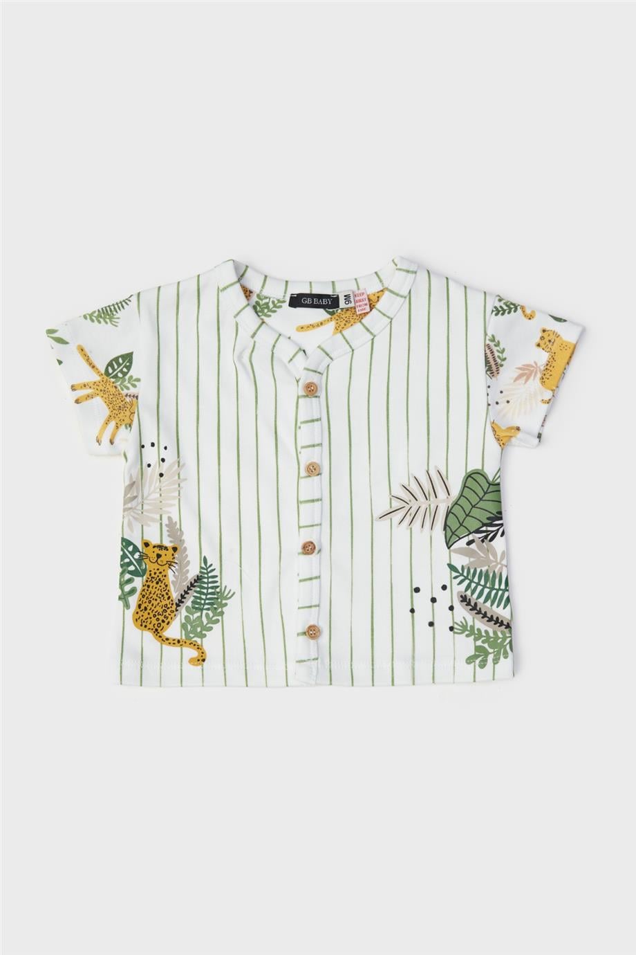 Erkek Bebek Desenli Pijama Takımı – %100 Pamuk – Paça : Normal Paça Yaka : Bisiklet Yaka Bel : Normal Bel Kol : Kısa Kol Kalıp : Geniş Kumaş : İnterlok Astar : Örme Kapama Detayı : Düğmeli Baskı – Nakış : Metraj baskılı Cep : Cepsiz