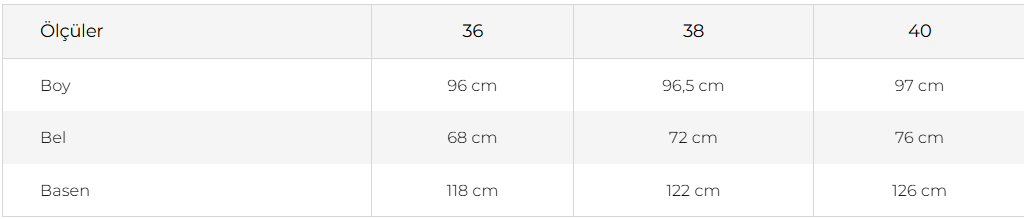 Açıklama: Elde yıkanmaz kuru temizleme yapınız.
