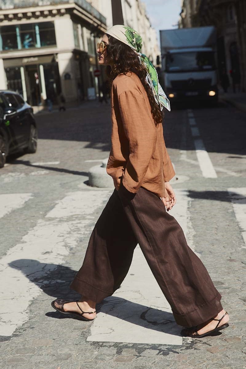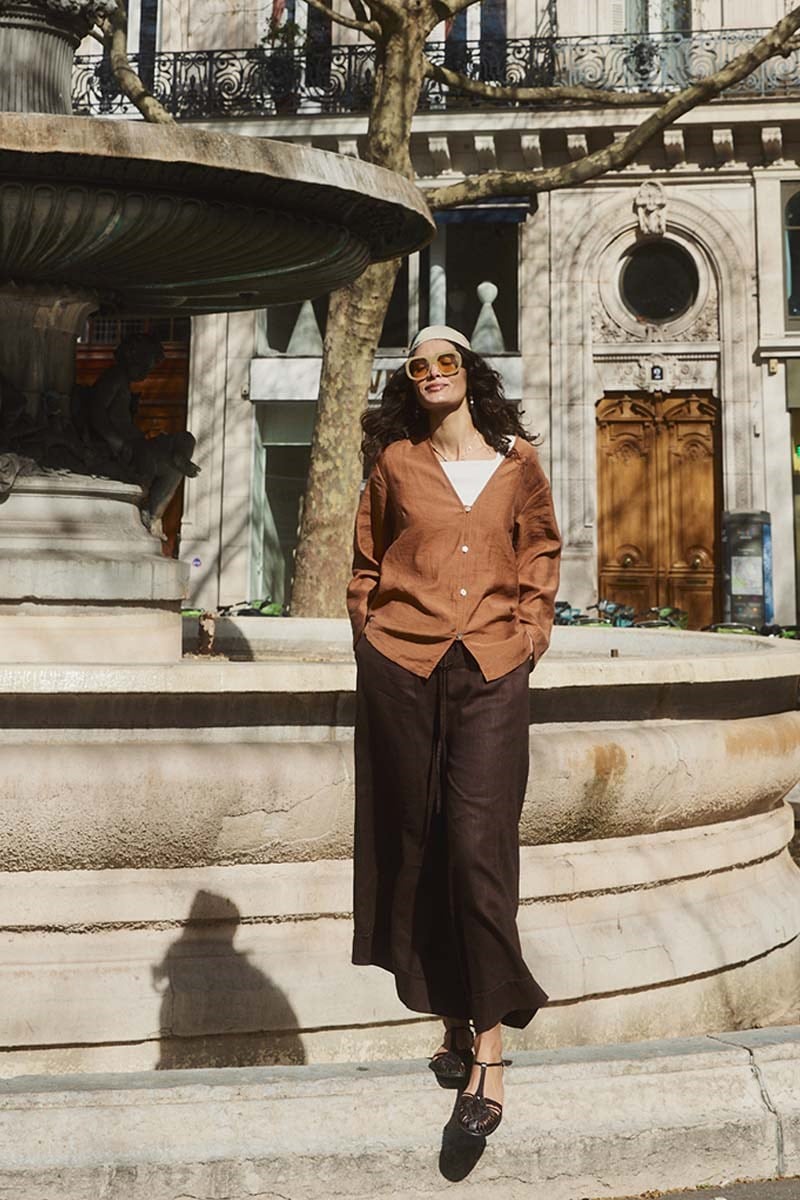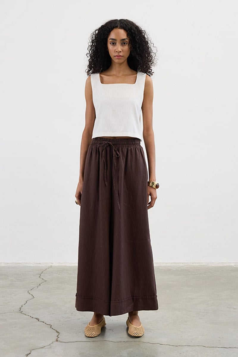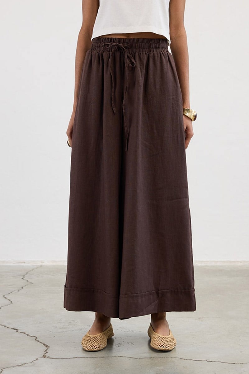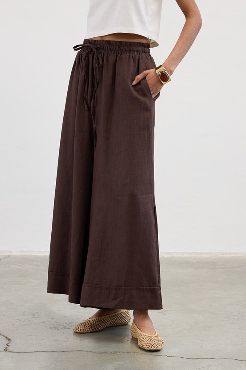Geniş Paça %100 Keten Pantolon Acı kahve