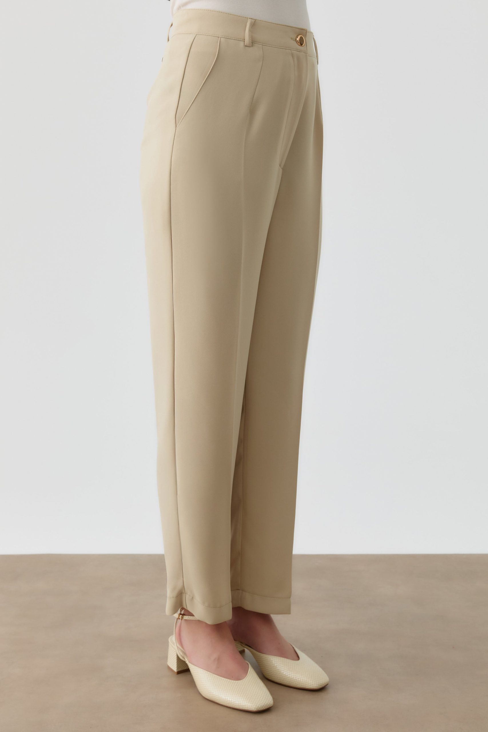 Bej-Bol Paça Keten Pantolon