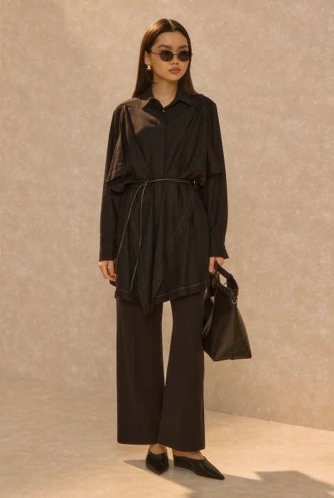 %50 keten ve %50 viskon karışımından üretilen bu gömlek, ön kısımda panel detayları, yaka ve dekoratif üst dikişlere sahiptir. Doğal kumaşı sayesinde yaz boyunca serin tutarken, bol kesimi gün boyu konfor sağlar. Gerçek beden ölçülerine uygun olduğundan, normalde giydiğiniz bedeni seçebilirsiniz. Ürünle birlikte kemer dahildir.