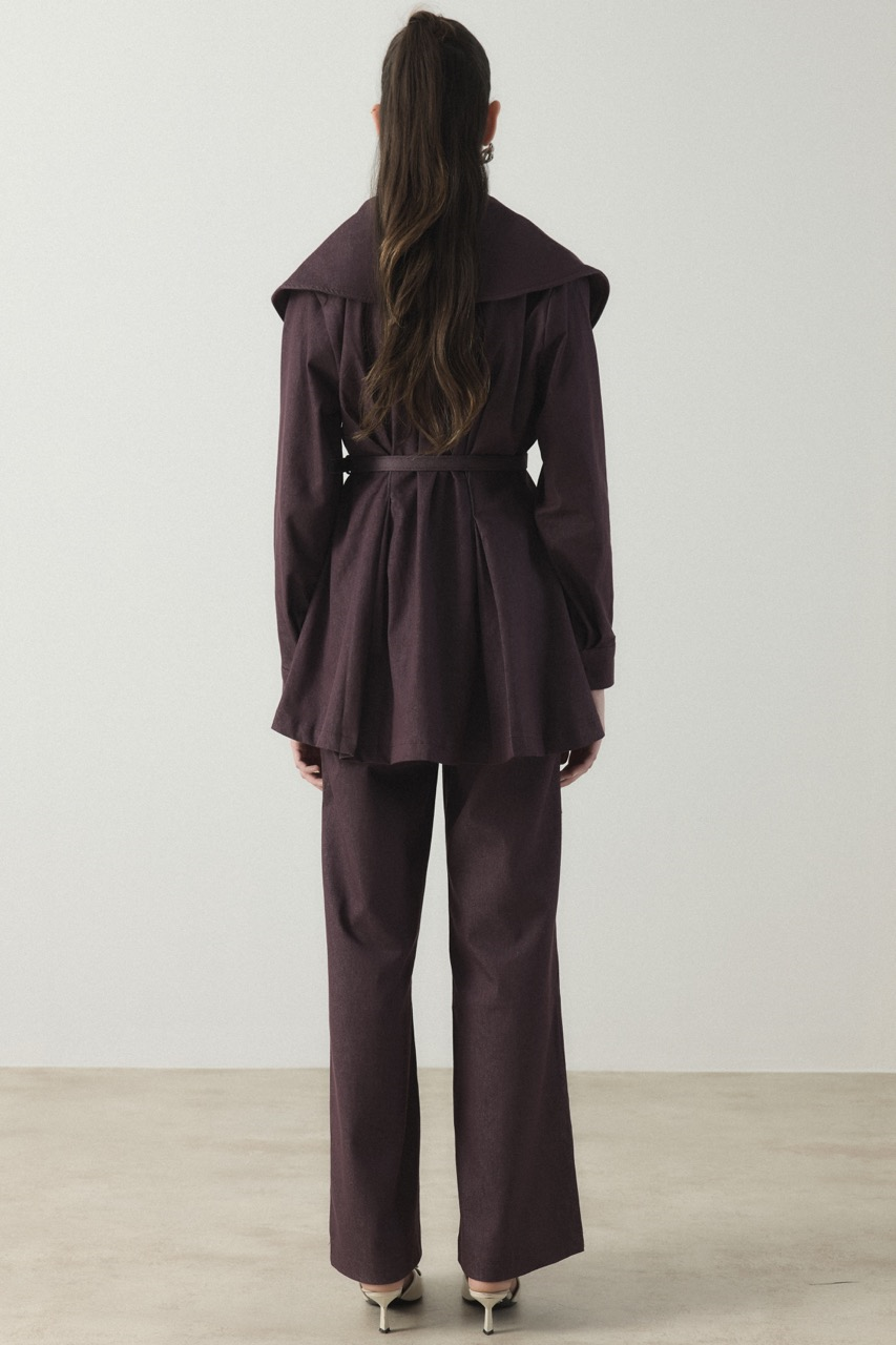 Geniş Yaka Kemerli Pantolon Takım – Bordo