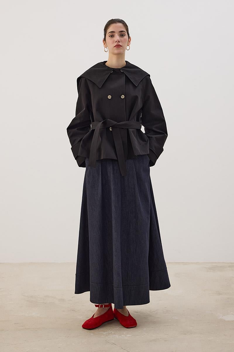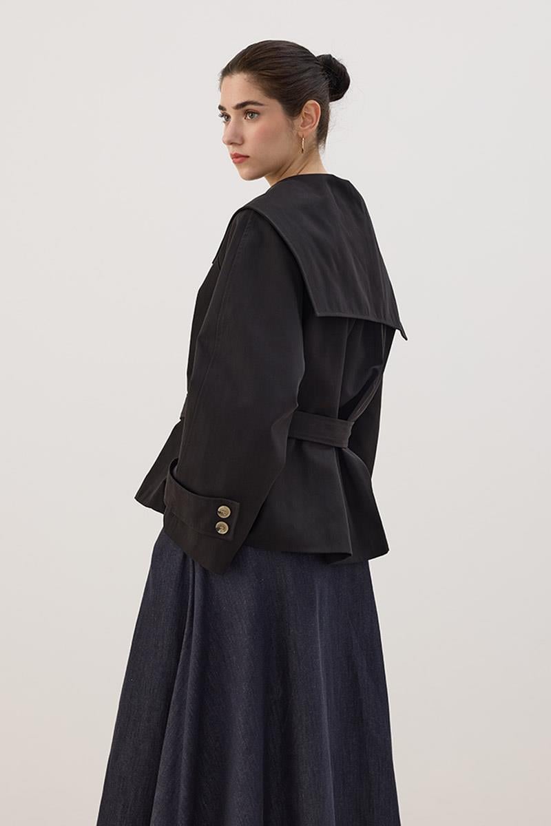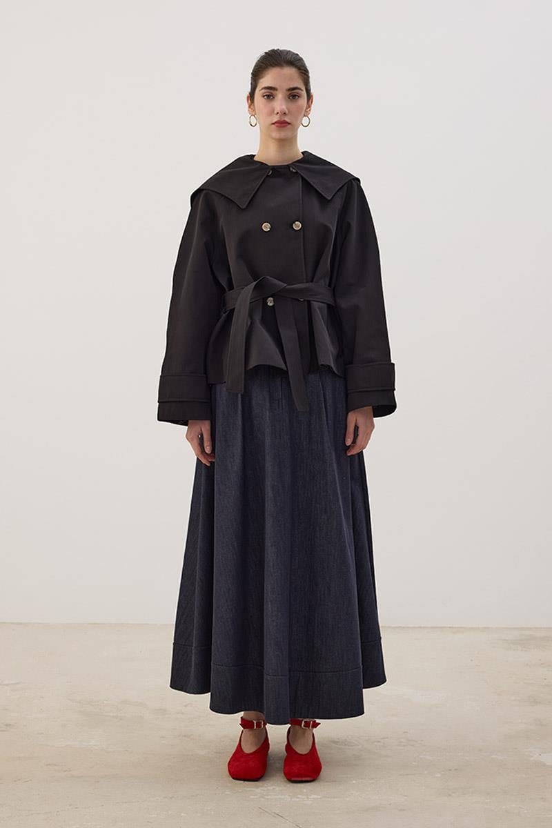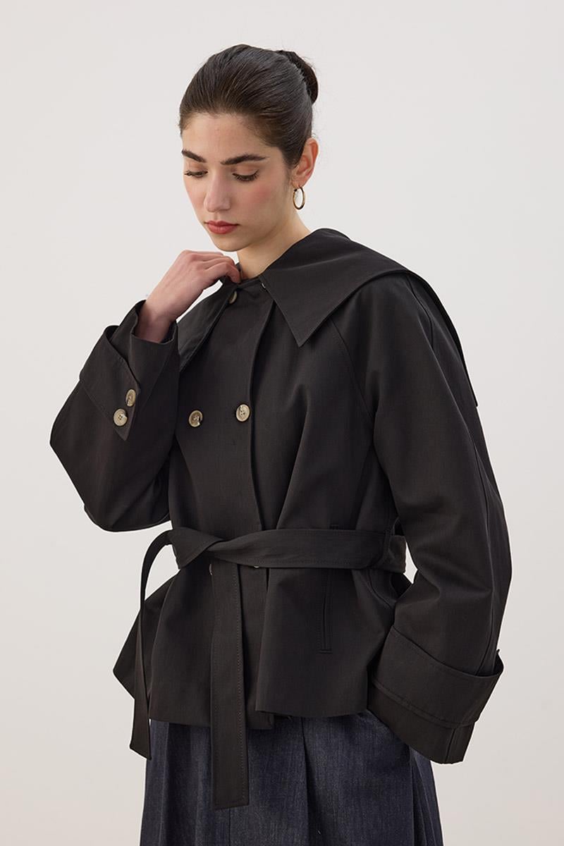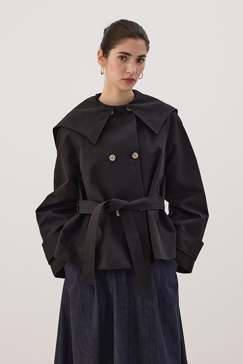 Geniş Yaka Kısa Trençkot Siyah