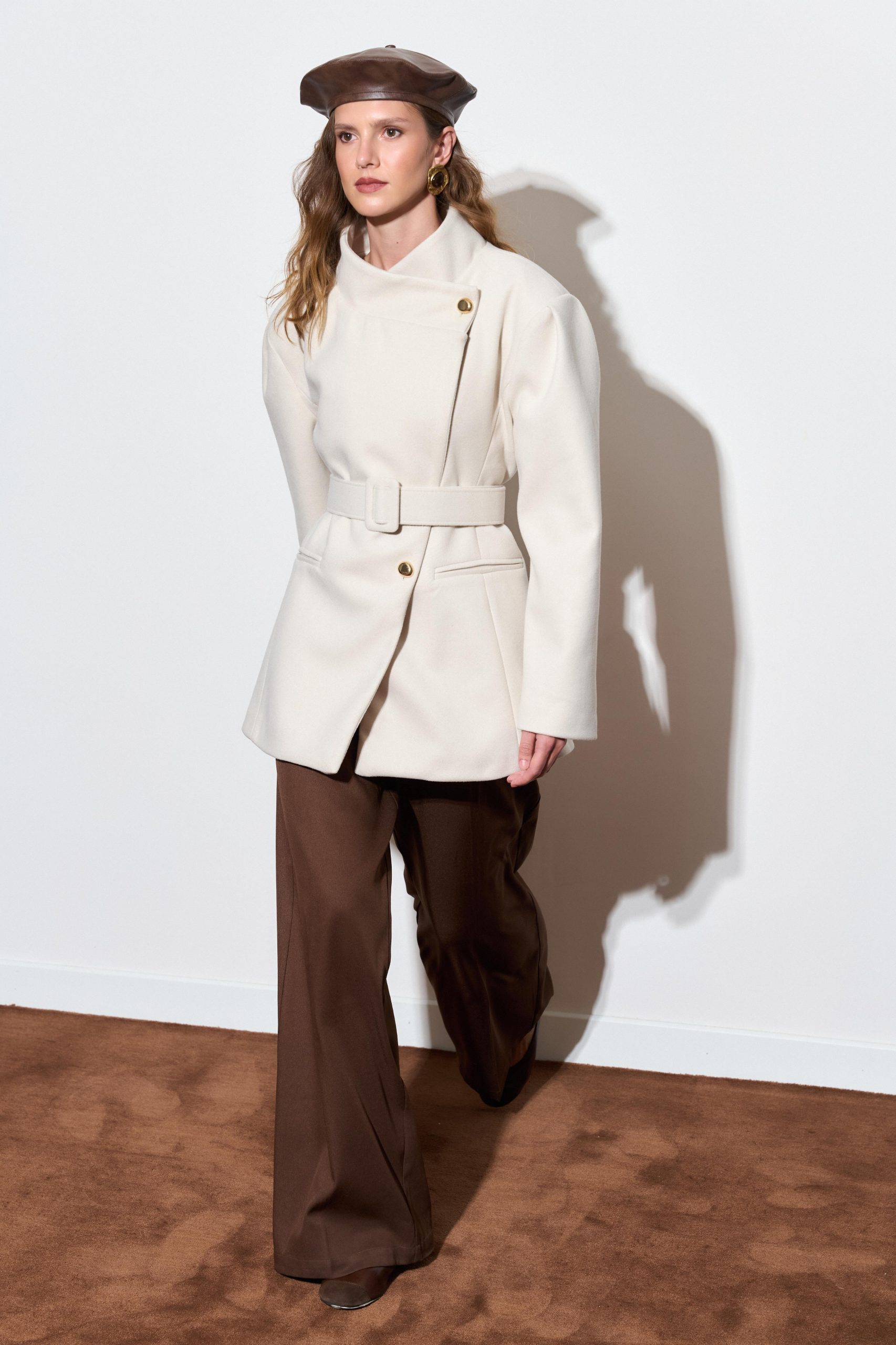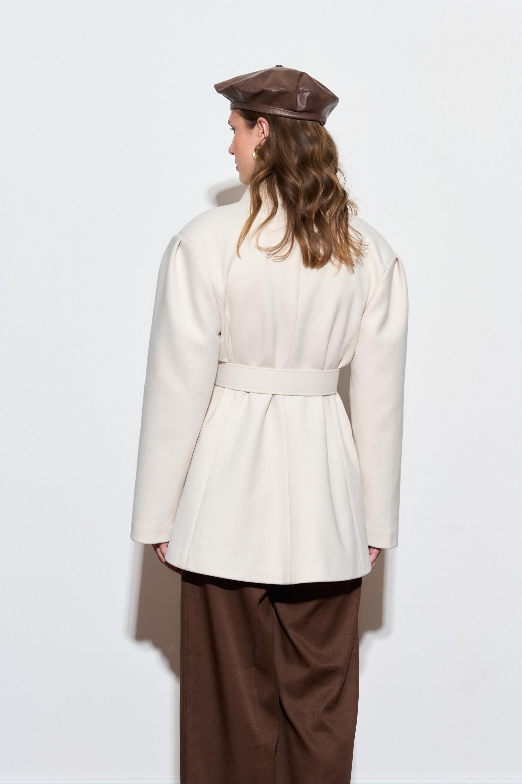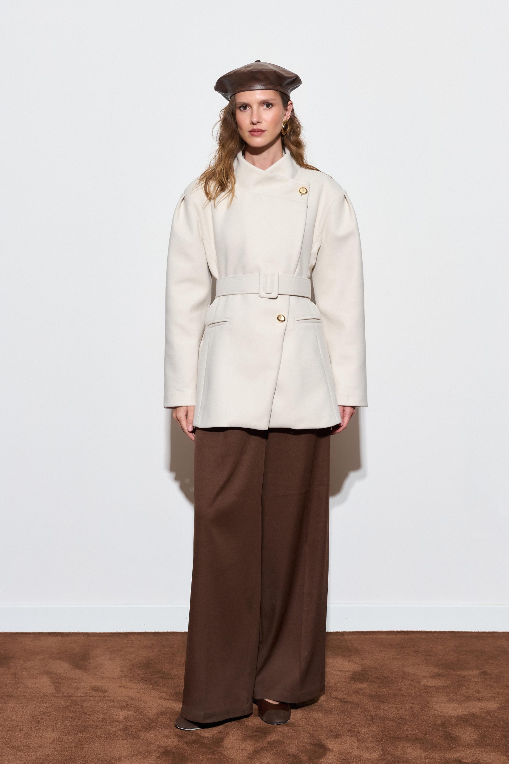 Geniş Yakalı Kaşe Ceket – Taş