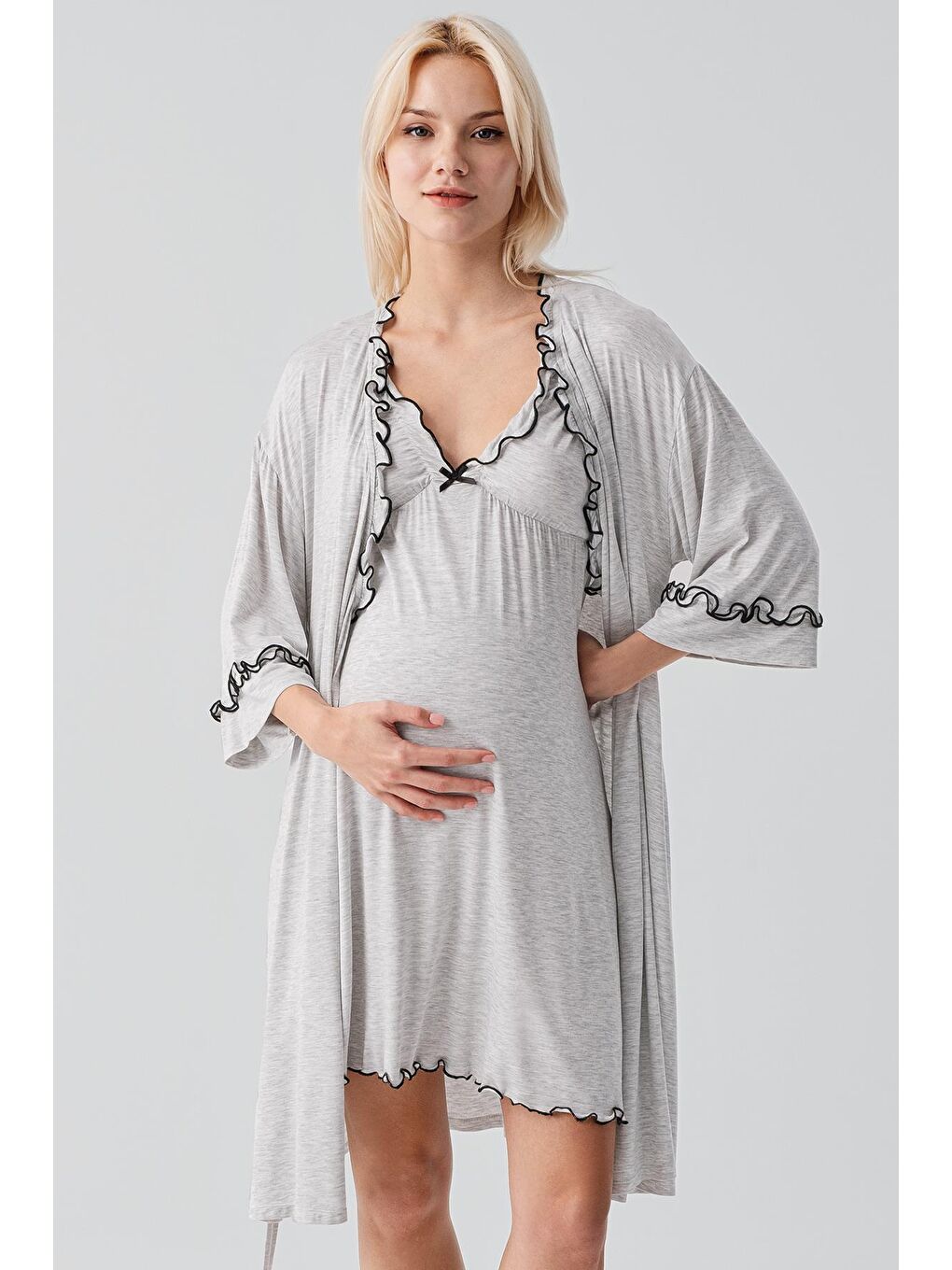 Etiketler: comfortable loungewear, elastane, gray sleepwear, maternity wear, nightwear, robe set, stretchy fabric, viscose