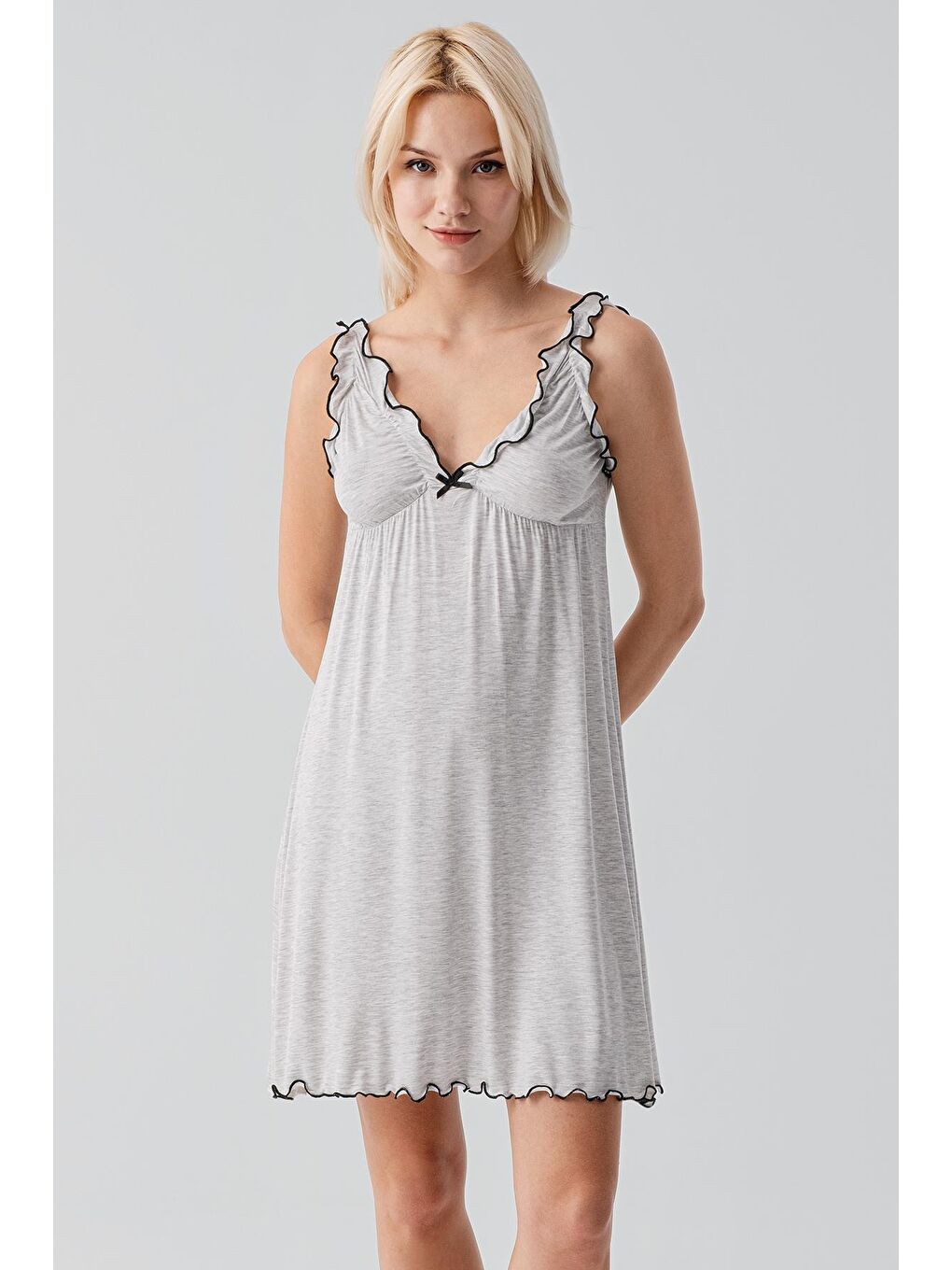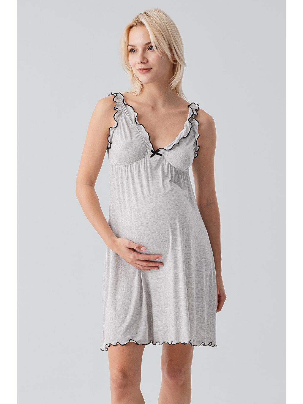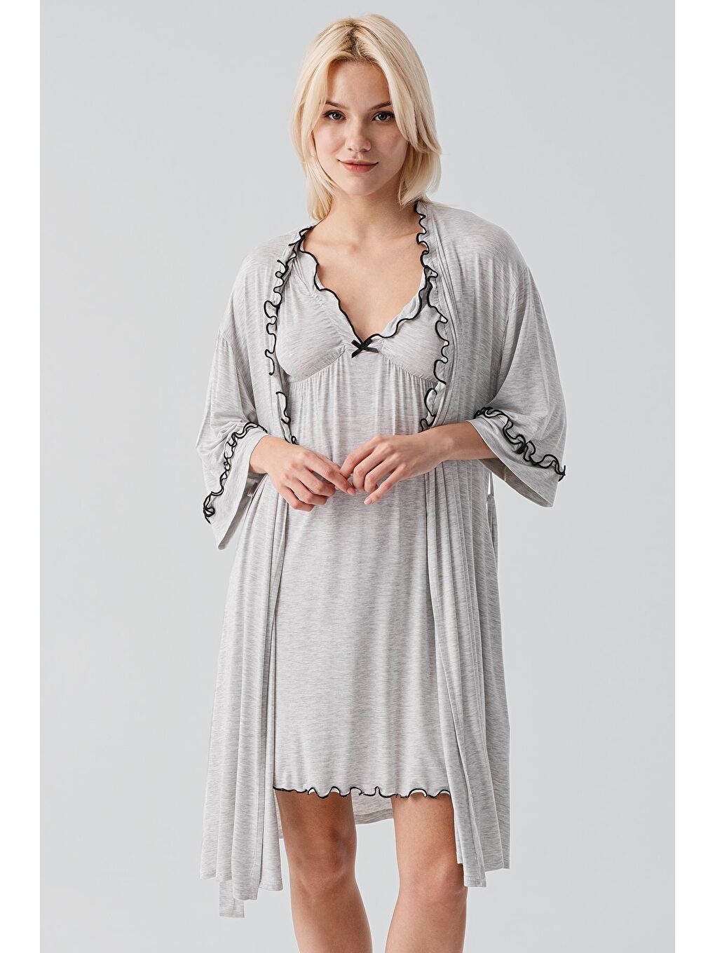Gri Askılı Kısa Esnek Elastanlı Viskoz Soft Hamile Sabahlık Gecelik Takım 19400