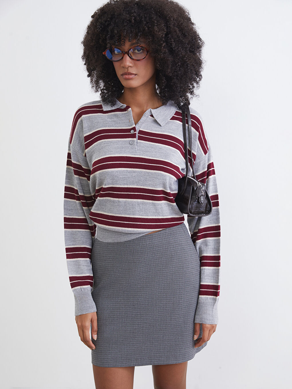 XSIDE Gri Polo Yaka Çizgili Oversize Kadın Triko Kazak size özel indirim, taksit ve kapıda ödeme avantajlarıyla LCW’de! Hemen online alışveriş yap, ürün kapına gelsin! – W5NF84Z8-LFY