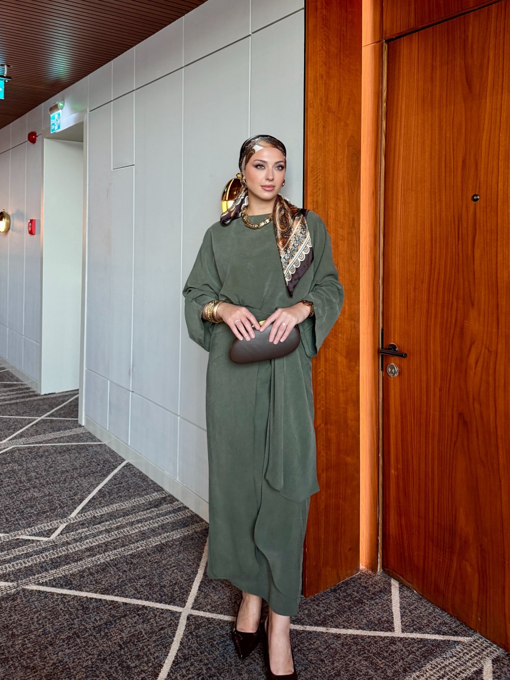 Tunik ve pantolonun uyumlu siluetiyle öne çıkan bu takım, aplike cep detaylarıyla sade tasarıma sofistike bir karakter kazandırır. Akıcı kumaşı gün boyu konfor sağlarken, modern çizgisi şehir stiline güçlü ama yalın bir dokunuş ekler.