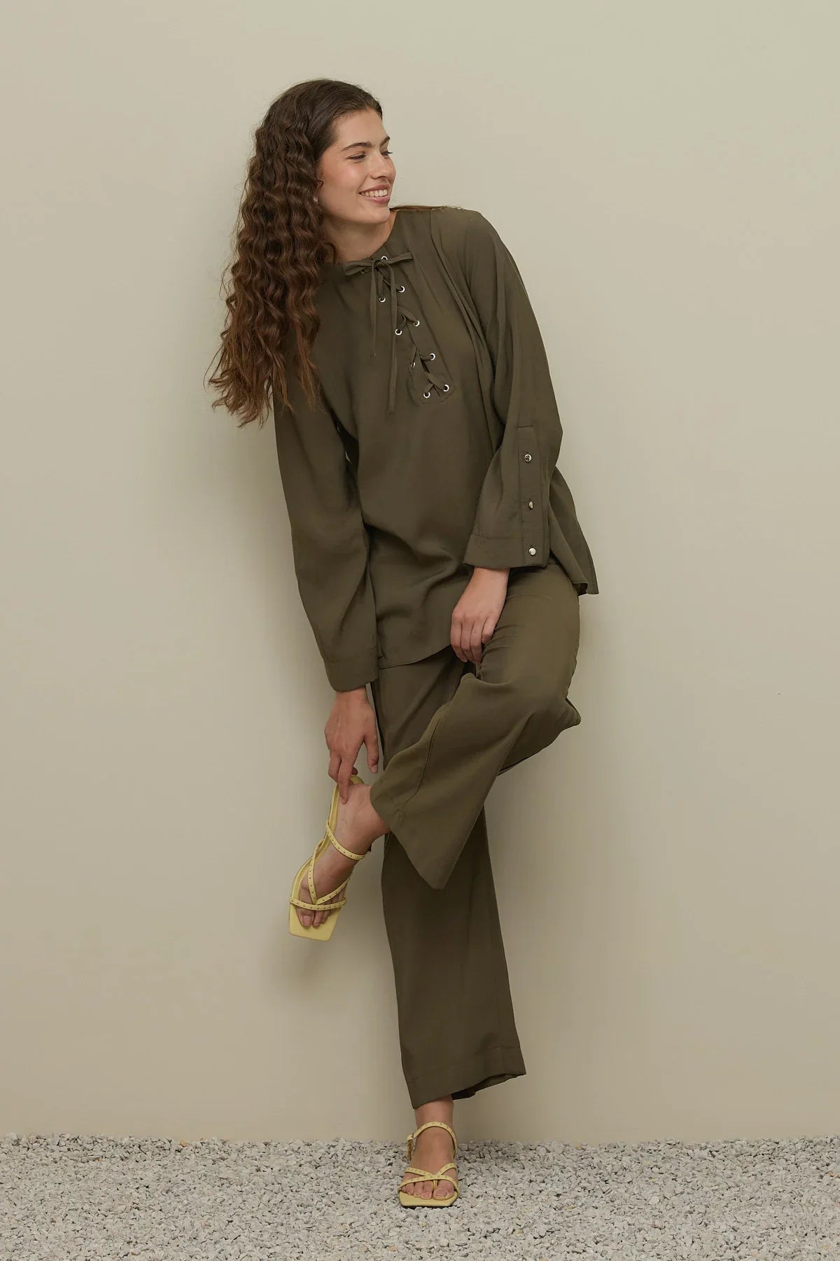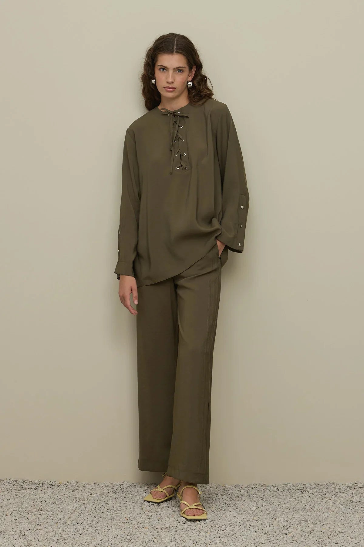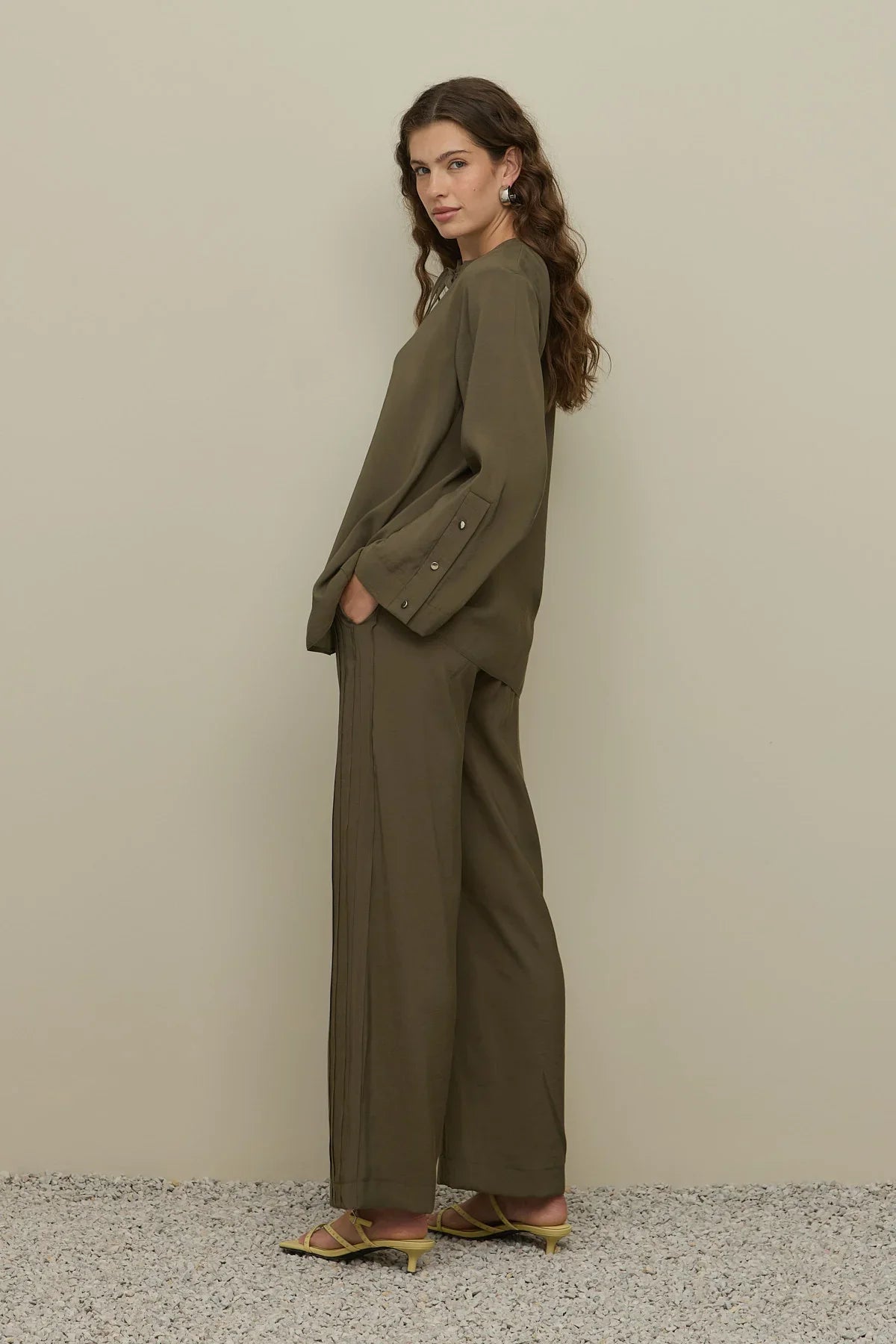 Haki Renkli Göz Detaylı Pantolon Takım
