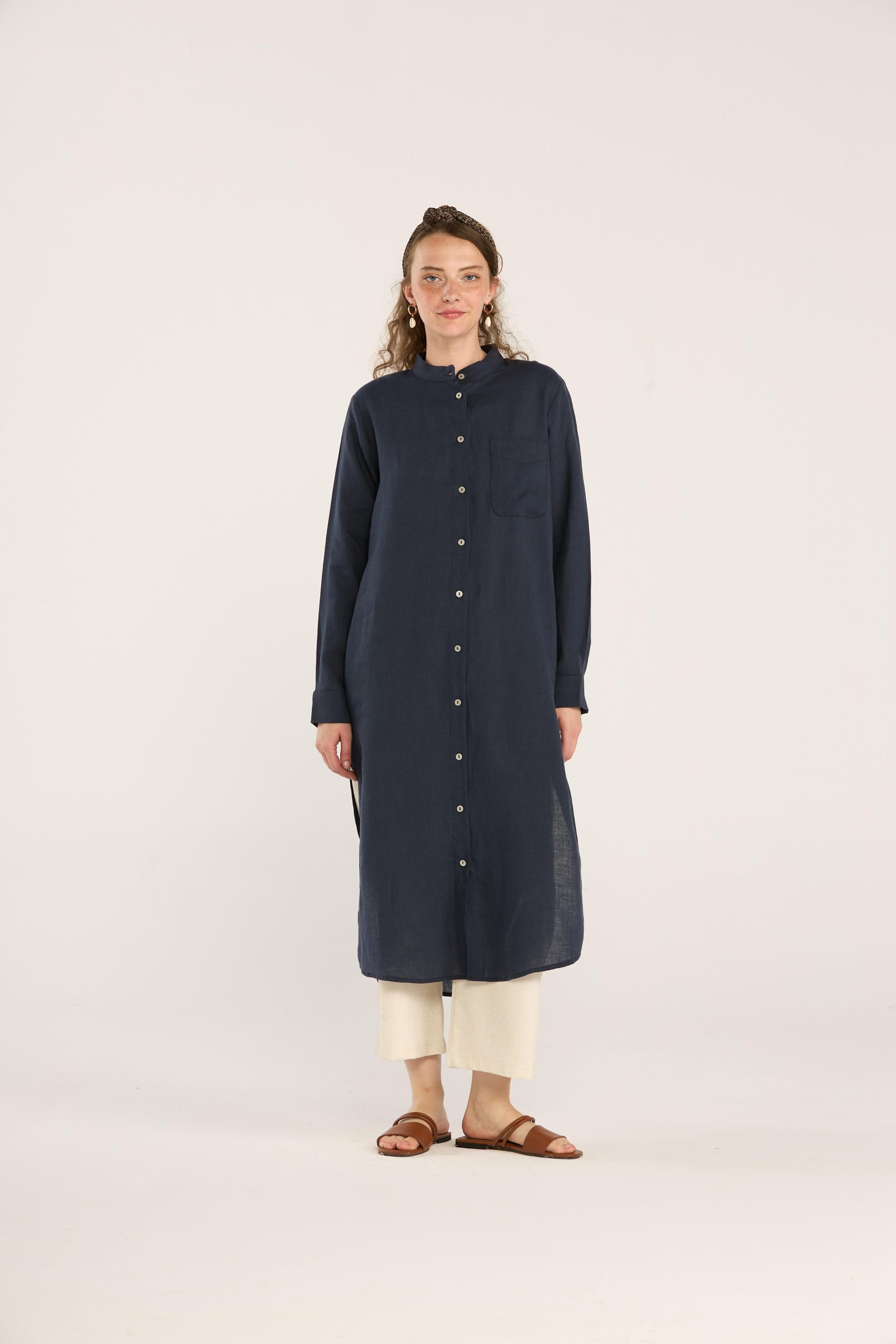 Hakim Yaka %100 Keten Tunik Lacivert