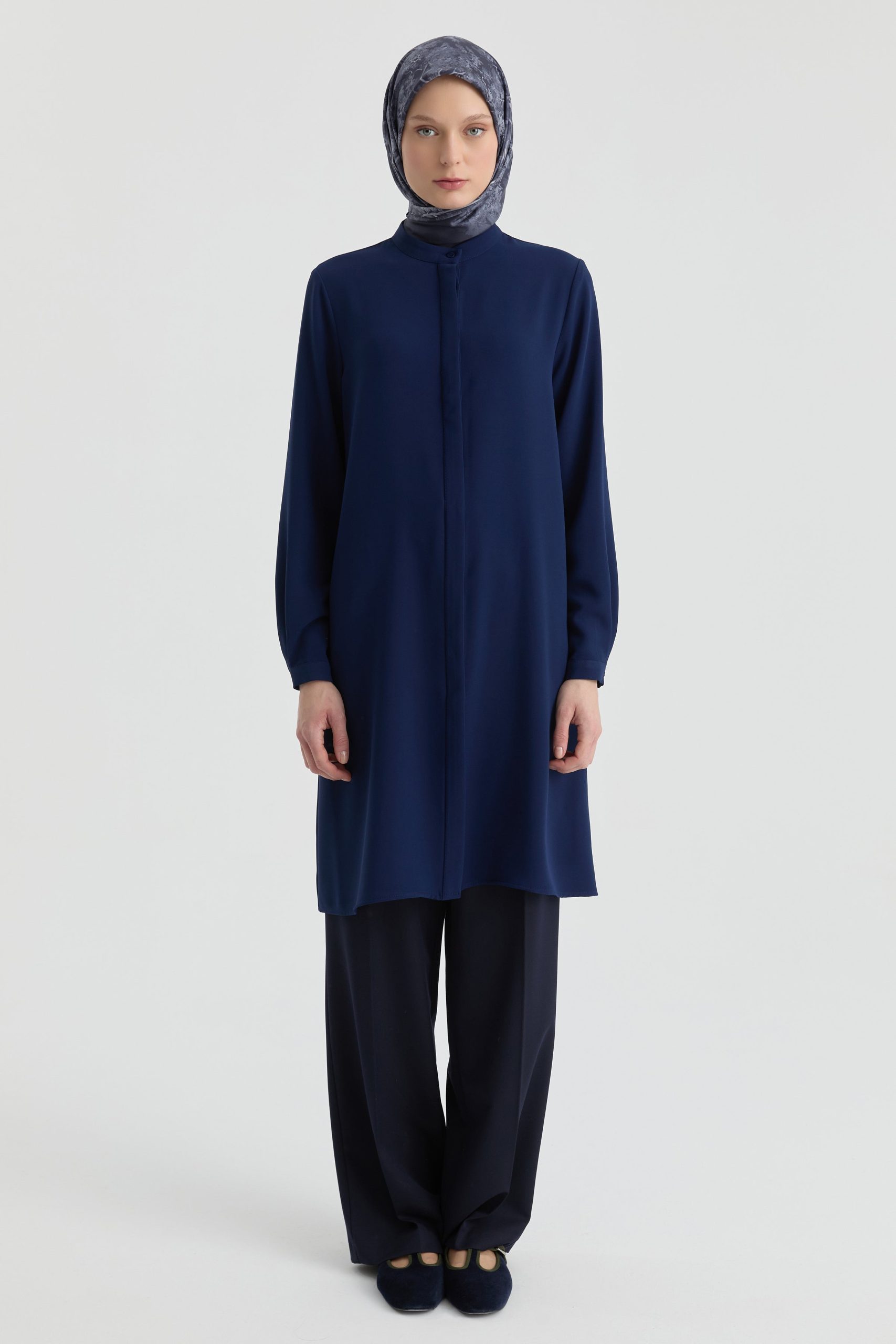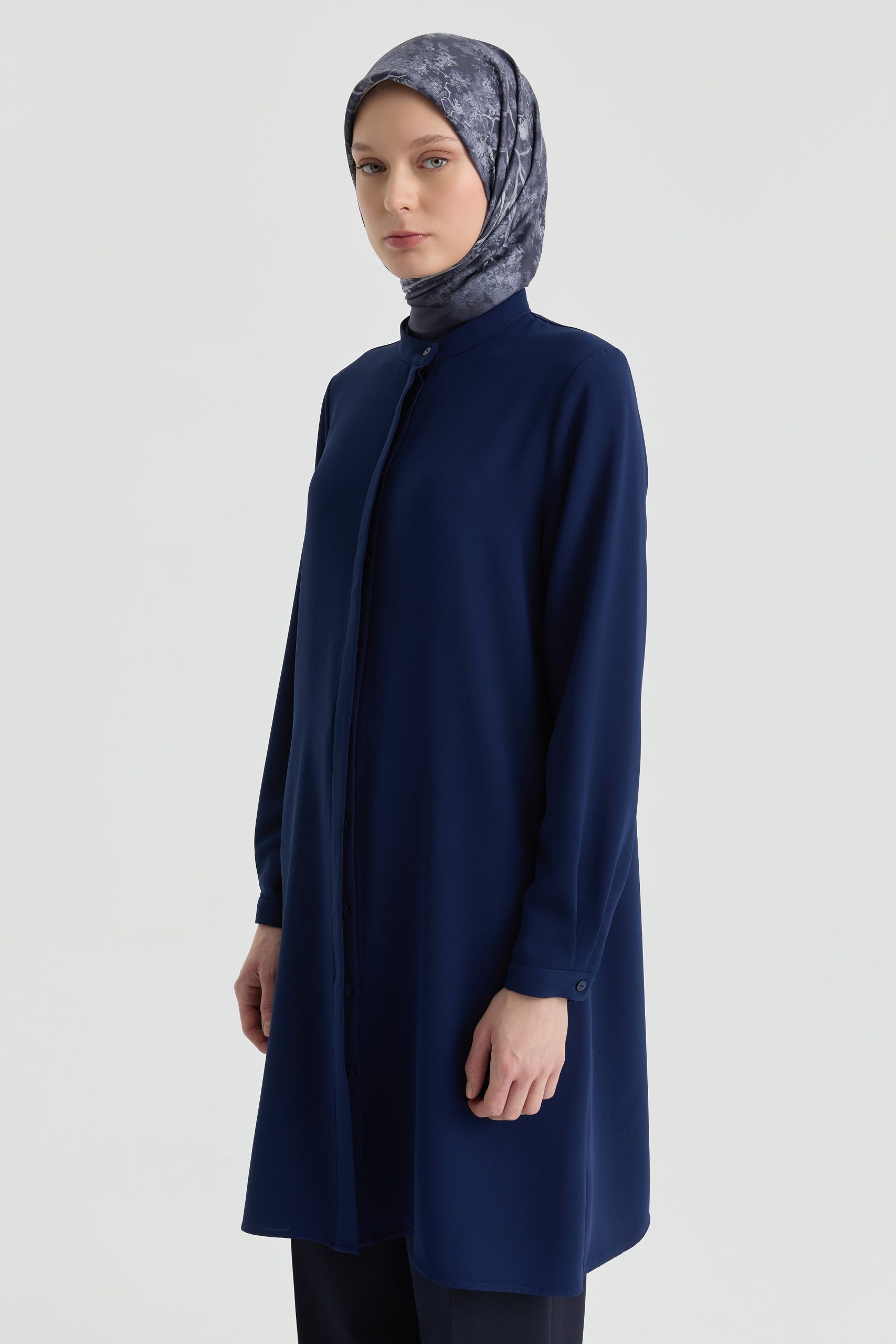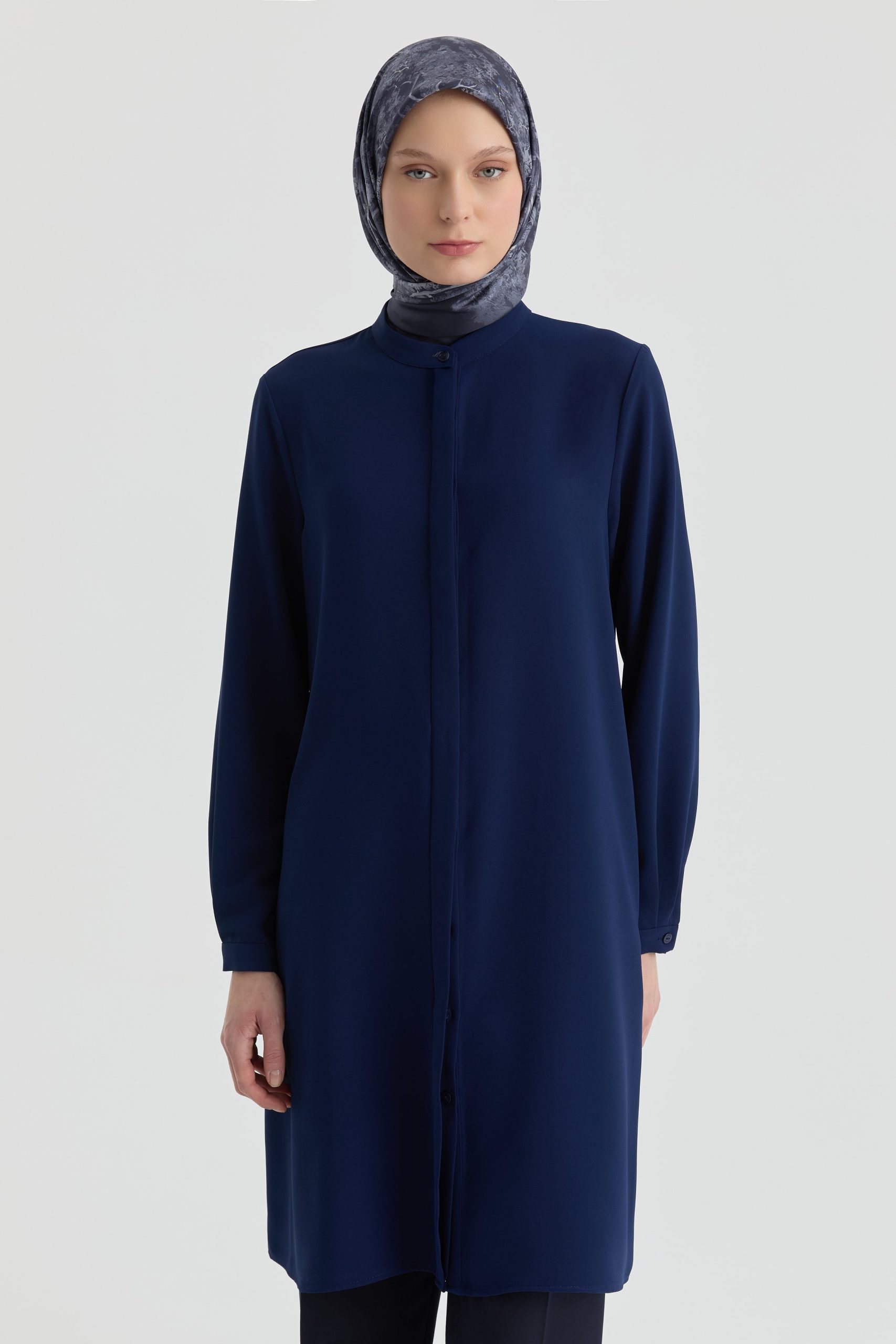 Hakim Yaka Gizli Patlı Tunik – Lacivert