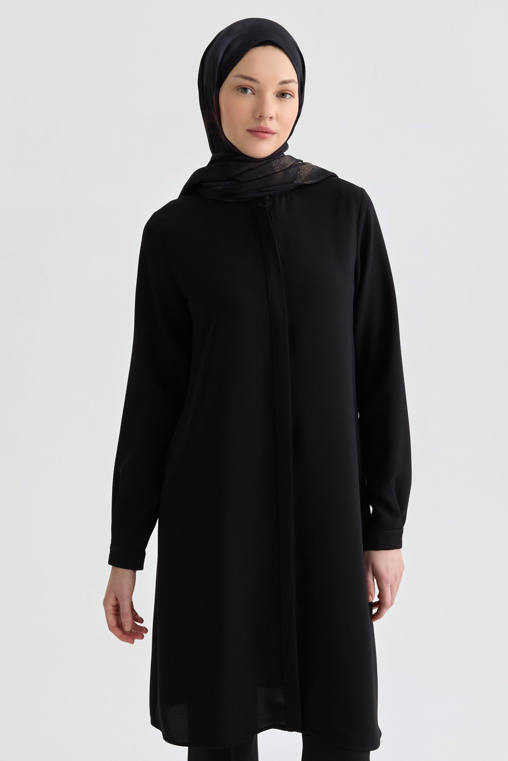 Hakim Yaka Gizli Patlı Tunik – Siyah