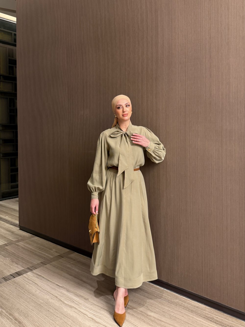 Tunik ve pantolonun uyumlu siluetiyle öne çıkan bu takım, aplike cep detaylarıyla sade tasarıma sofistike bir karakter kazandırır. Akıcı kumaşı gün boyu konfor sağlarken, modern çizgisi şehir stiline güçlü ama yalın bir dokunuş ekler.