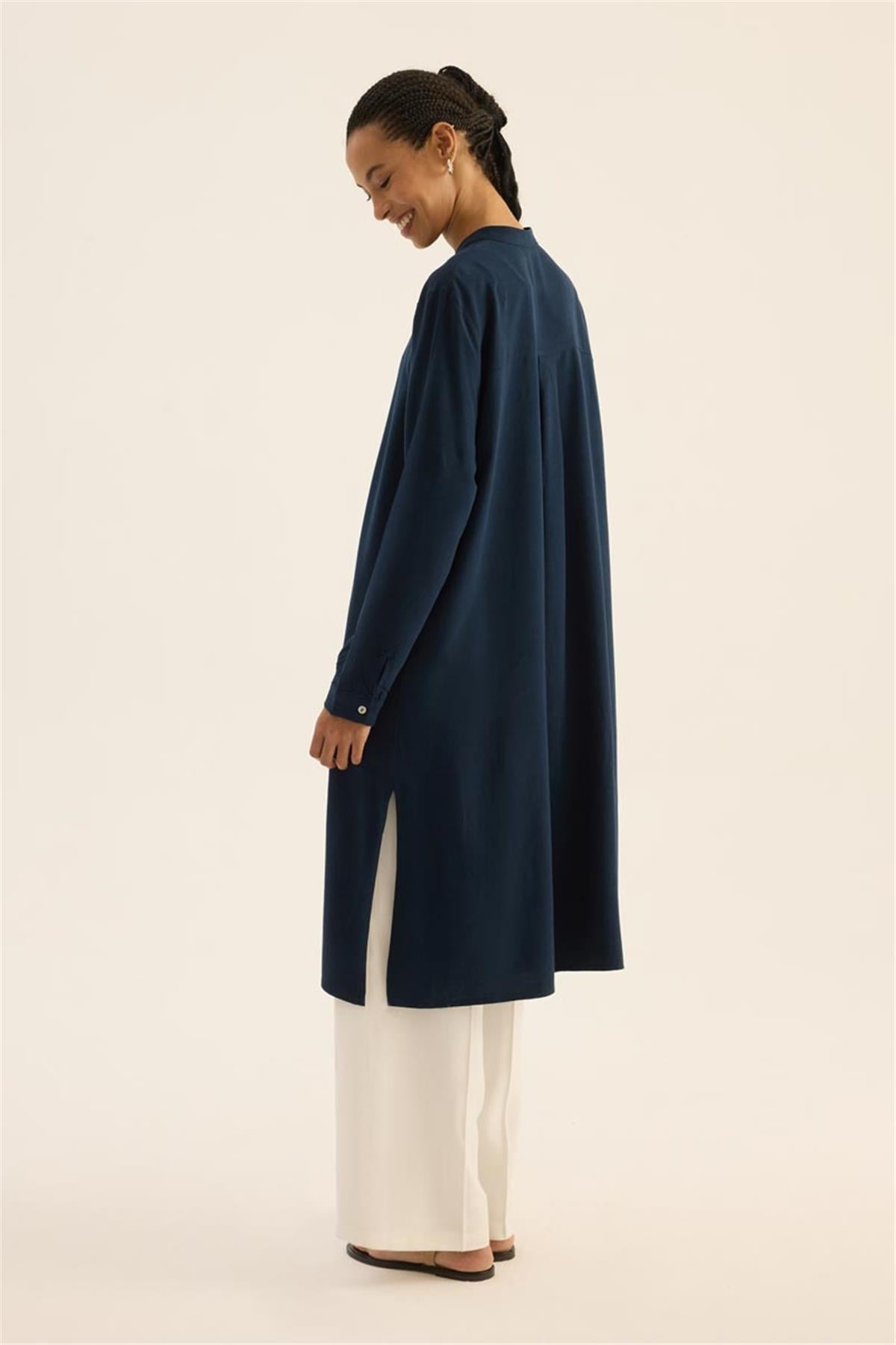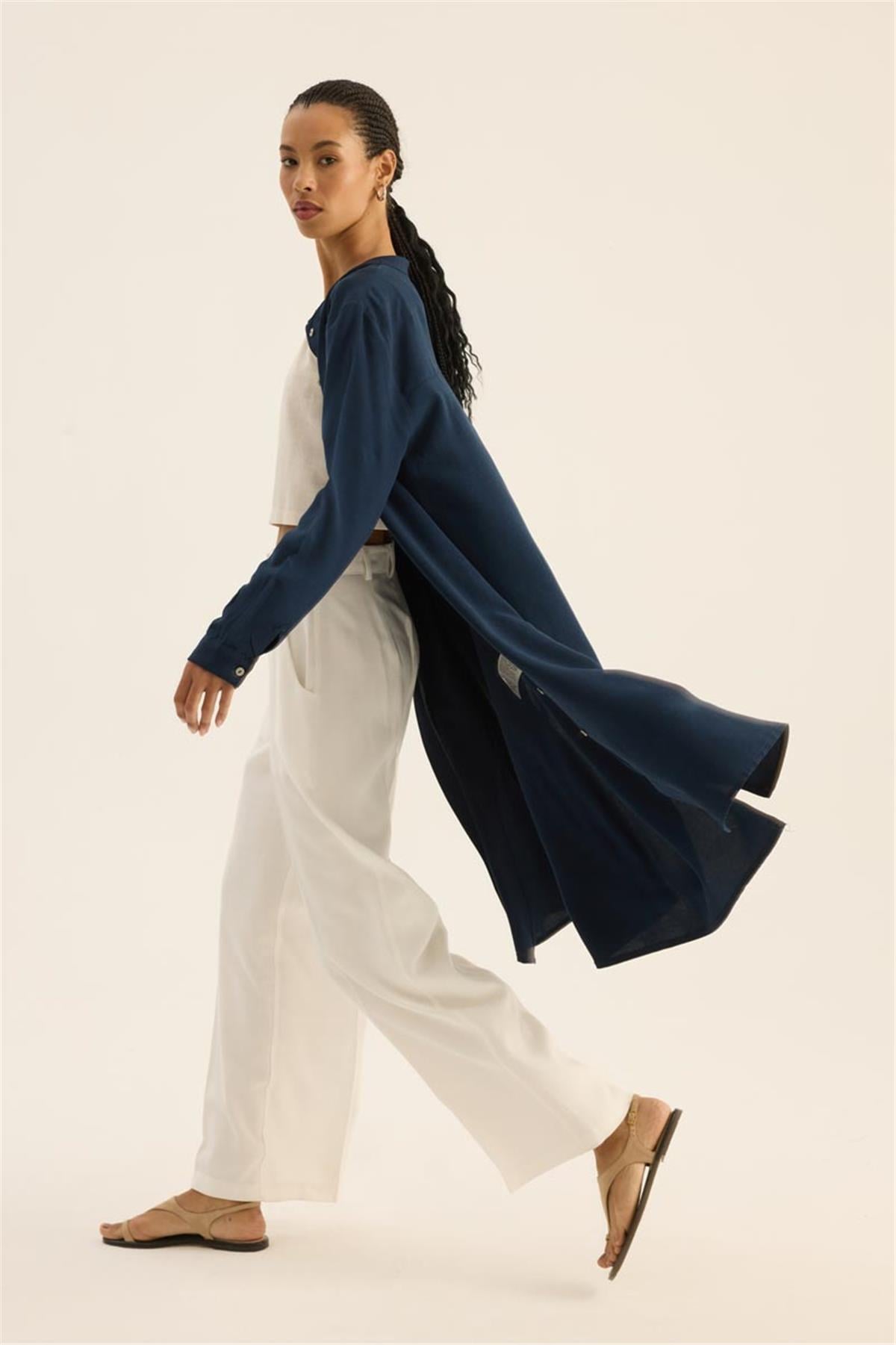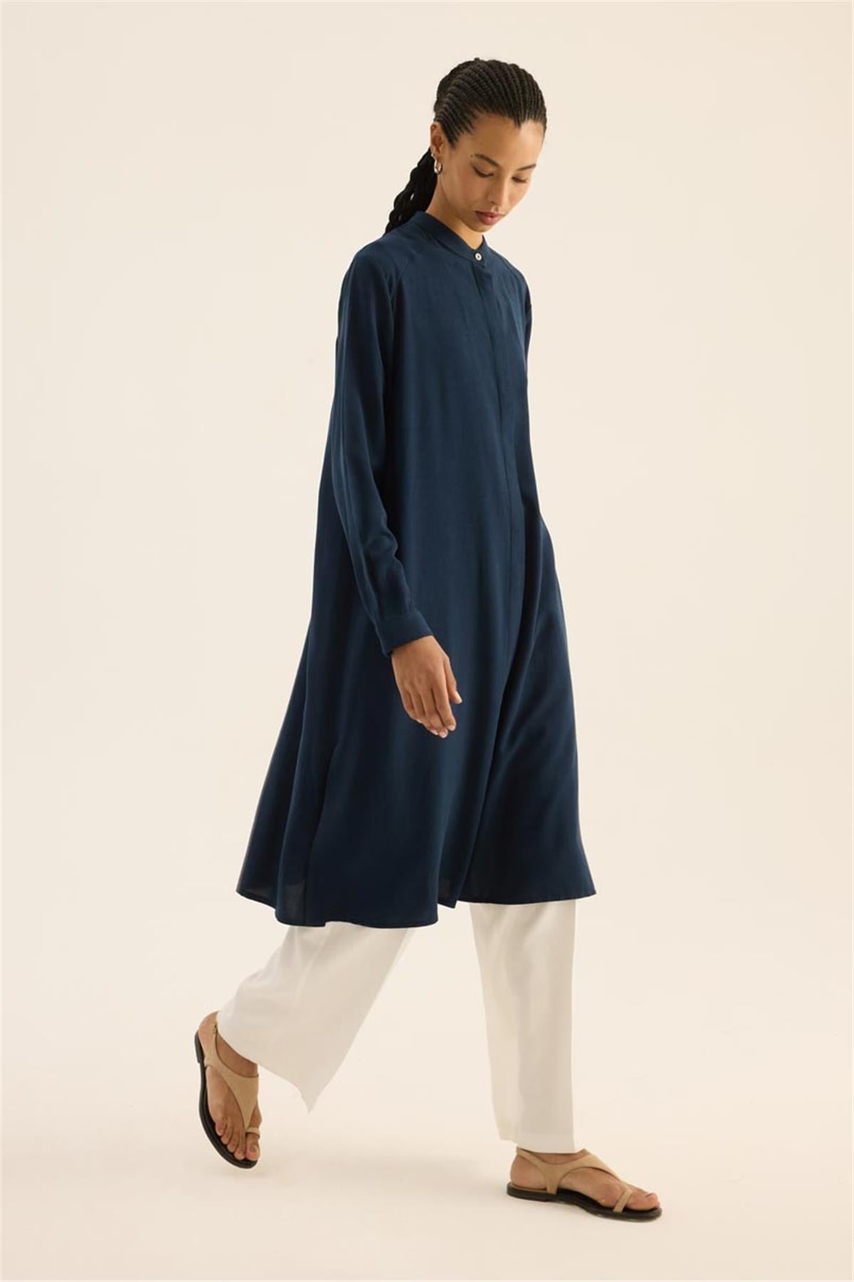 Doğal ve ferah bir görünüm sunan taş rengi uzun tunik, yaz sezonunun hafif ve şık parçalarından biri. %88 Tencel ve %12 Pes karışımından üretilen kumaşı, yumuşak dokusu ve nefes alabilir yapısıyla gün boyu konfor sağlar. Minimal tasarımı, gizli patlı düğme detayı ve eteğinde yer alan zarif kavis kesimi ile modern bir duruş sergiler.