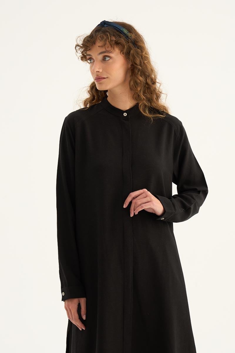 Doğal ve ferah bir görünüm sunan taş rengi uzun tunik, yaz sezonunun hafif ve şık parçalarından biri. %88 Tencel ve %12 Pes karışımından üretilen kumaşı, yumuşak dokusu ve nefes alabilir yapısıyla gün boyu konfor sağlar. Minimal tasarımı, gizli patlı düğme detayı ve eteğinde yer alan zarif kavis kesimi ile modern bir duruş sergiler.