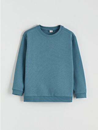 İndigo Bisiklet Yaka Erkek Çocuk Kalın Sweatshirt