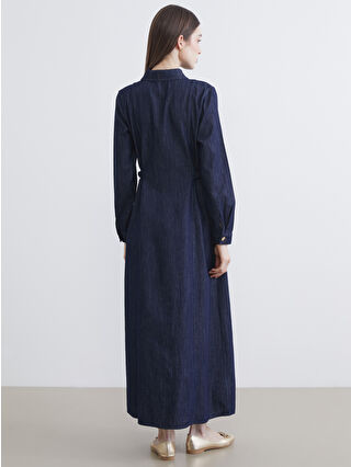 İndigo Gömlek Yaka Kadın Jean Elbise