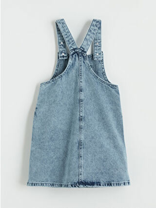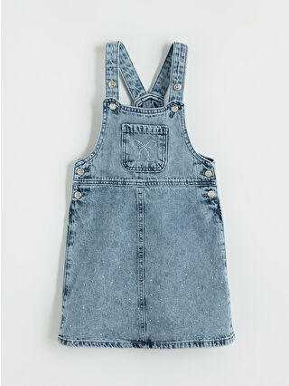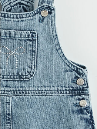 İndigo Kare Yaka Taş İşlemeli Kız Çocuk Jean Salopet