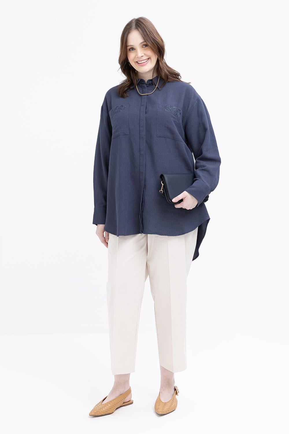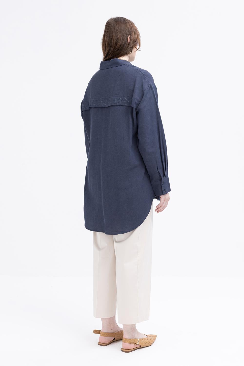 İndigo-Nakışlı Gömlek Tunik