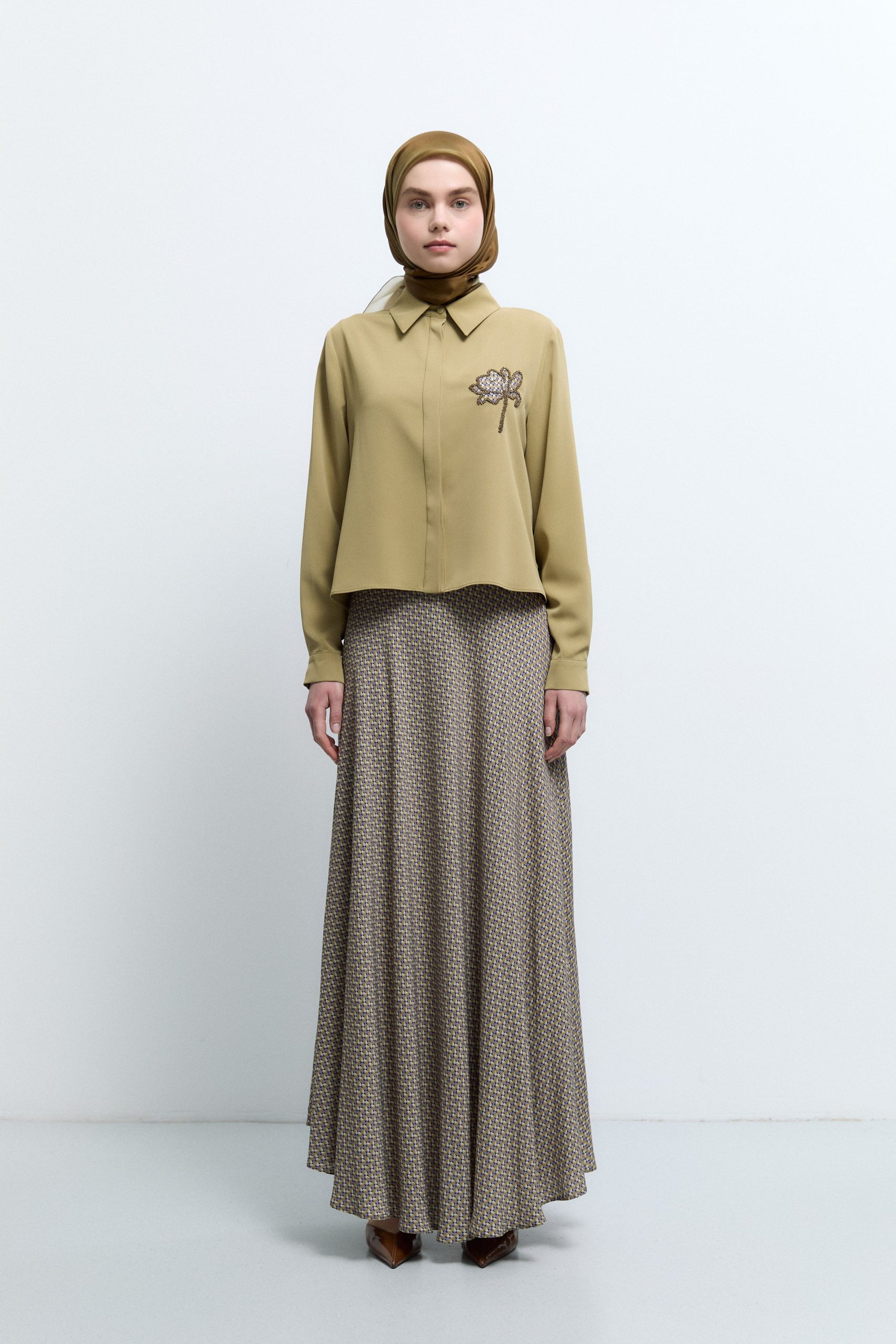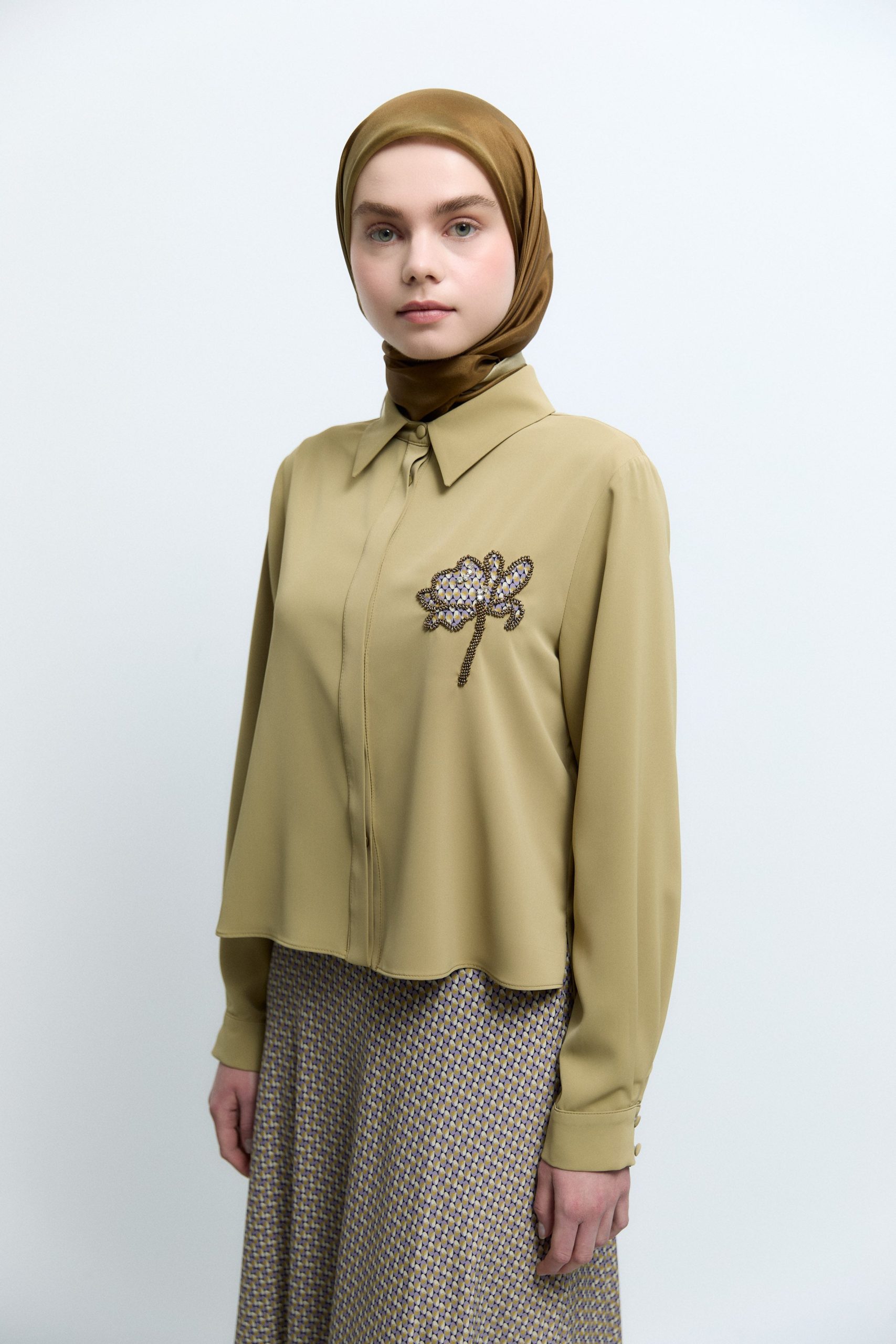 İşleme vurgusunu sade formuyla dengeleyen İşleme Detaylı Gömlek, sofistike ve dikkat çekici kombinler için seçkin bir tercihtir.