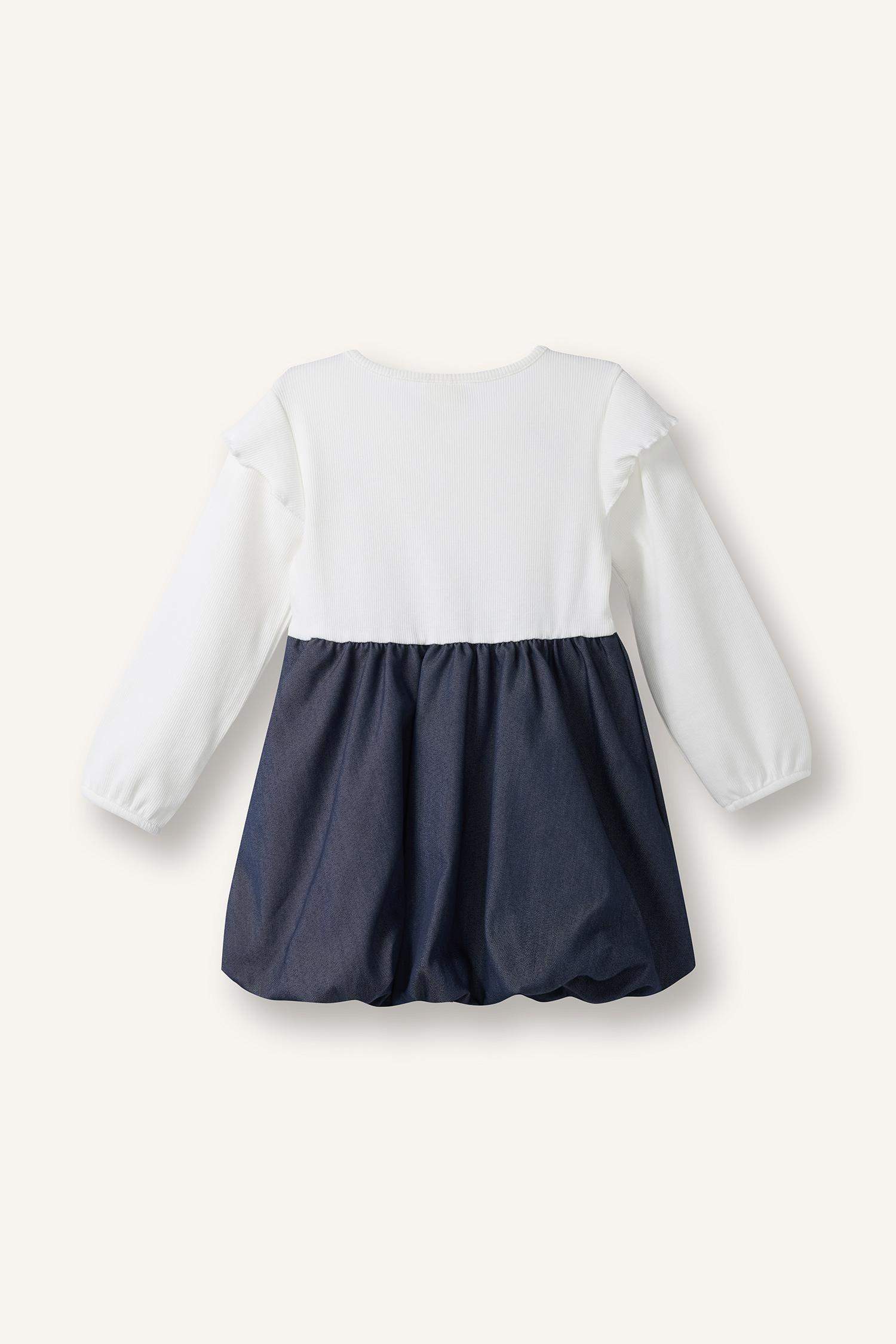 İşlemeli Uzun Kollu Fitilli Kaşkorse Elbise Kız Bebek