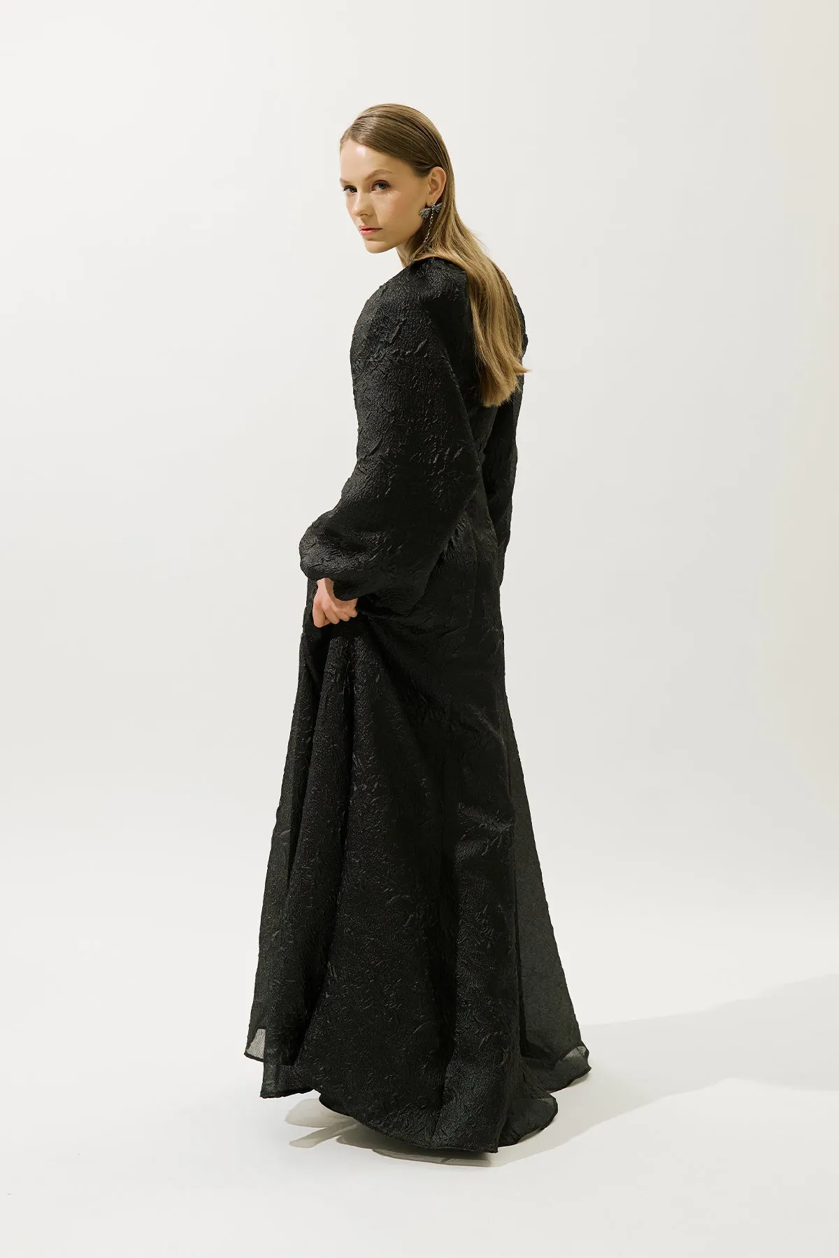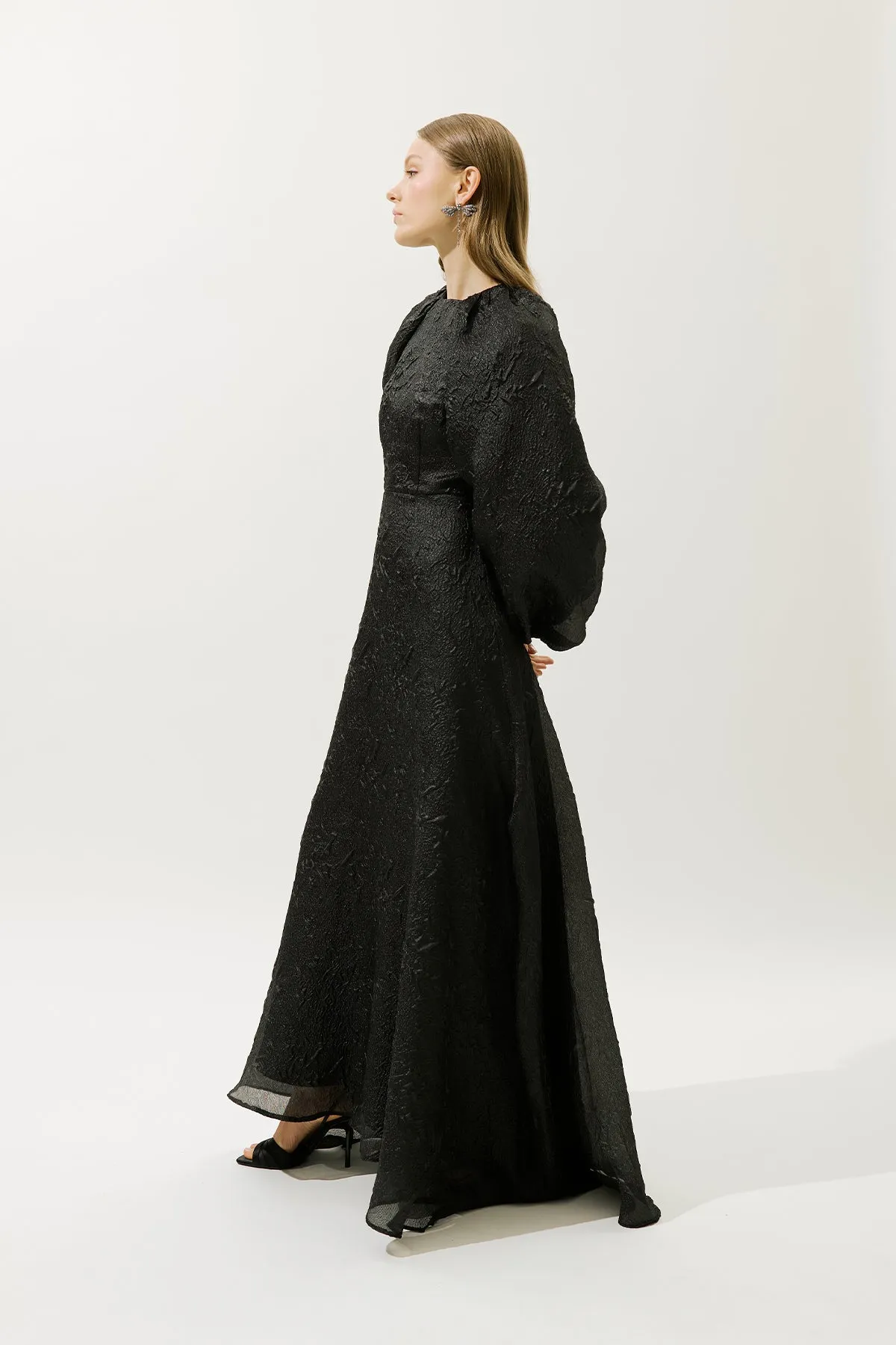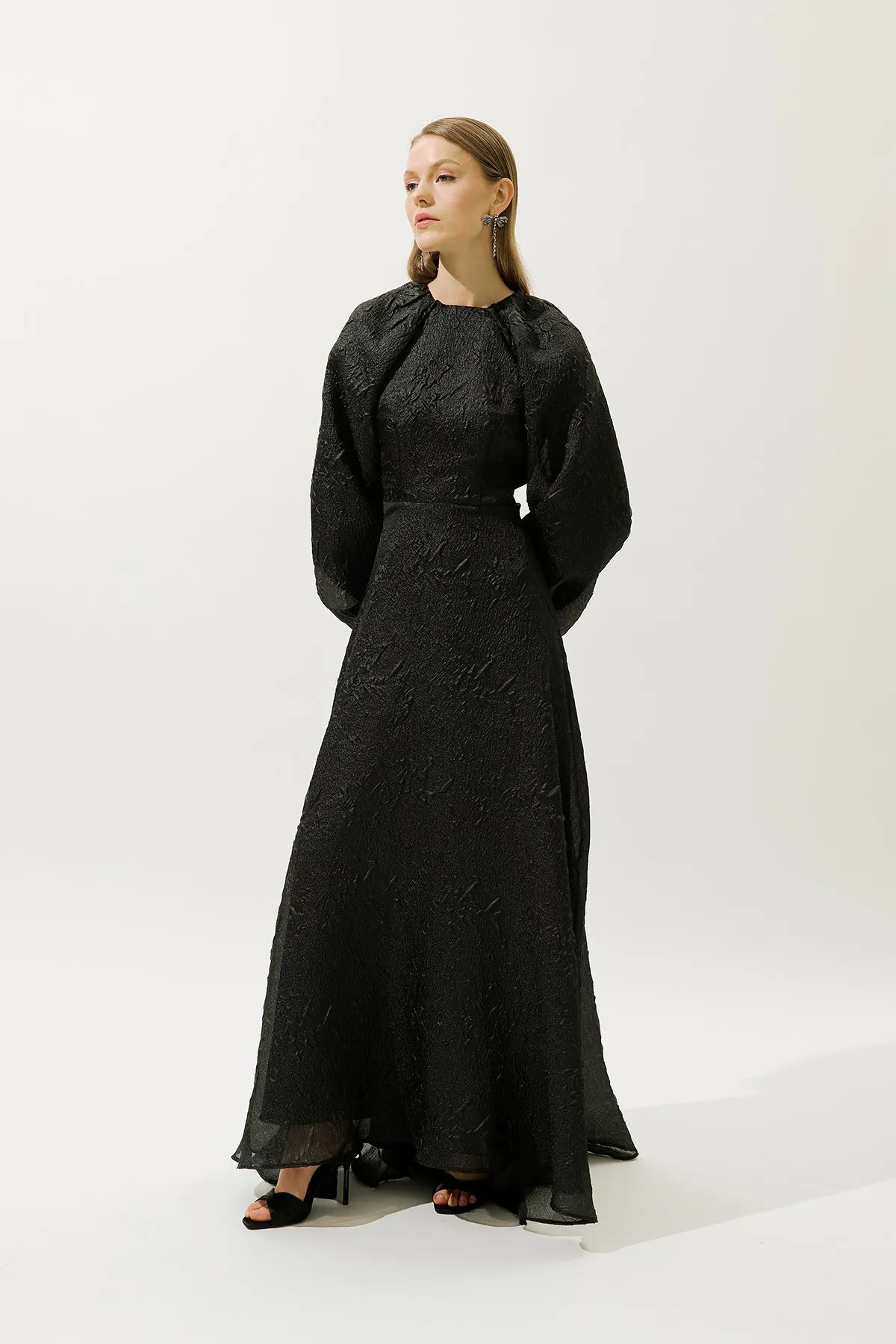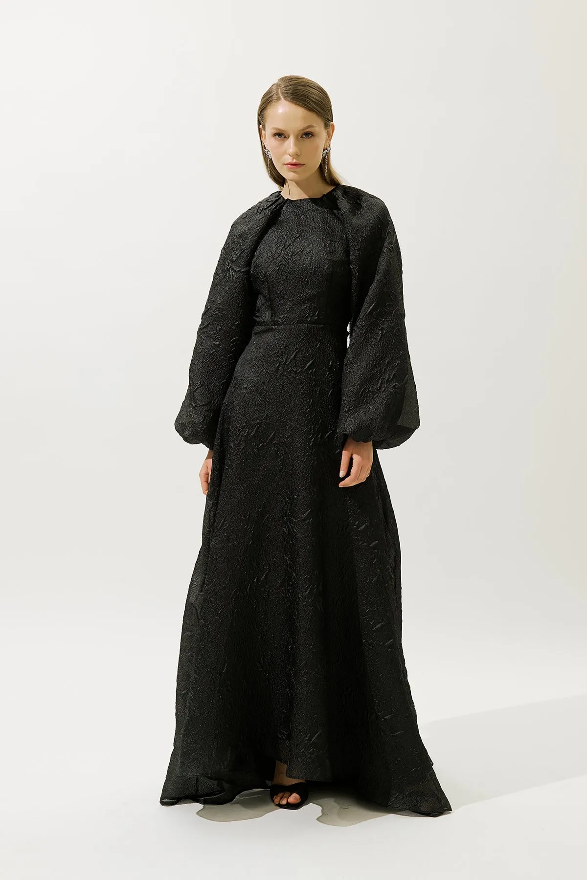 Işıltılı saten dokusuyla asil bir duruş sergileyen bu abiye, zarif kesimi ve inci detaylı kemeriyle şıklığı en sade haliyle yansıtıyor. Davetlerde ve özel günlerde sofistike bir görünüm arayanlar için ideal bir seçim.