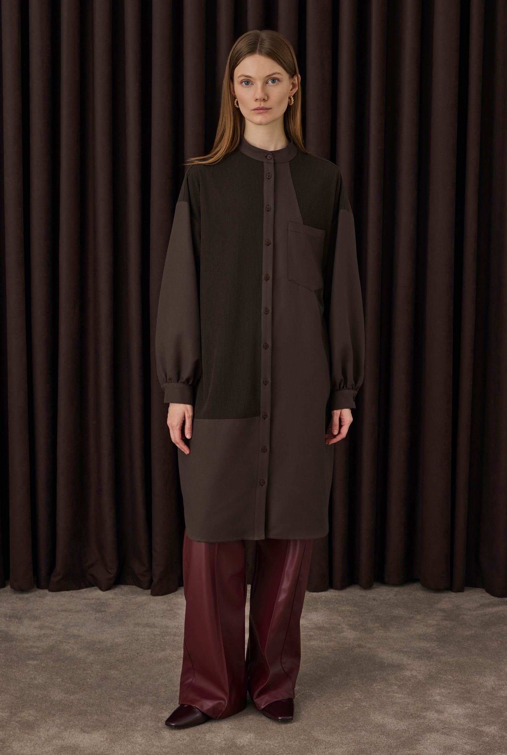 Kadife Garnili Gömlek Acı Kahve