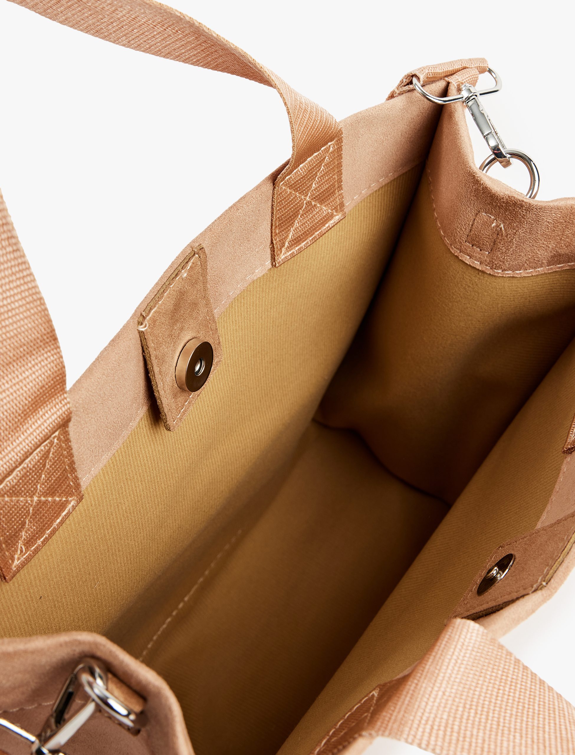 Kadın Etiket Detaylı Saplı Askılı Suni Süet Tote Çanta
