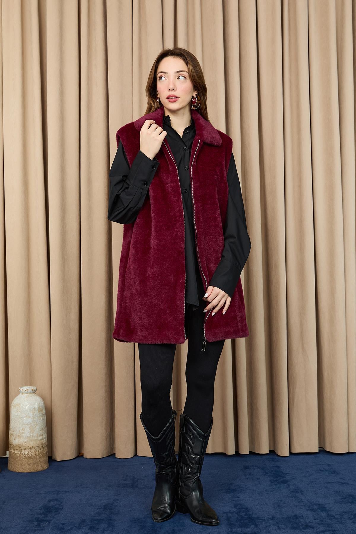 Kadın Fermuarlı Peluş Yelek- 15238YLK – DAMSON