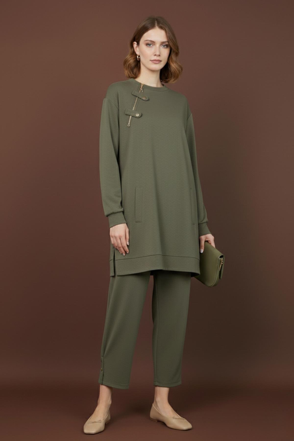 Kadın Yaka Fermuar Detaylı Takım -14406TKS – KHAKI