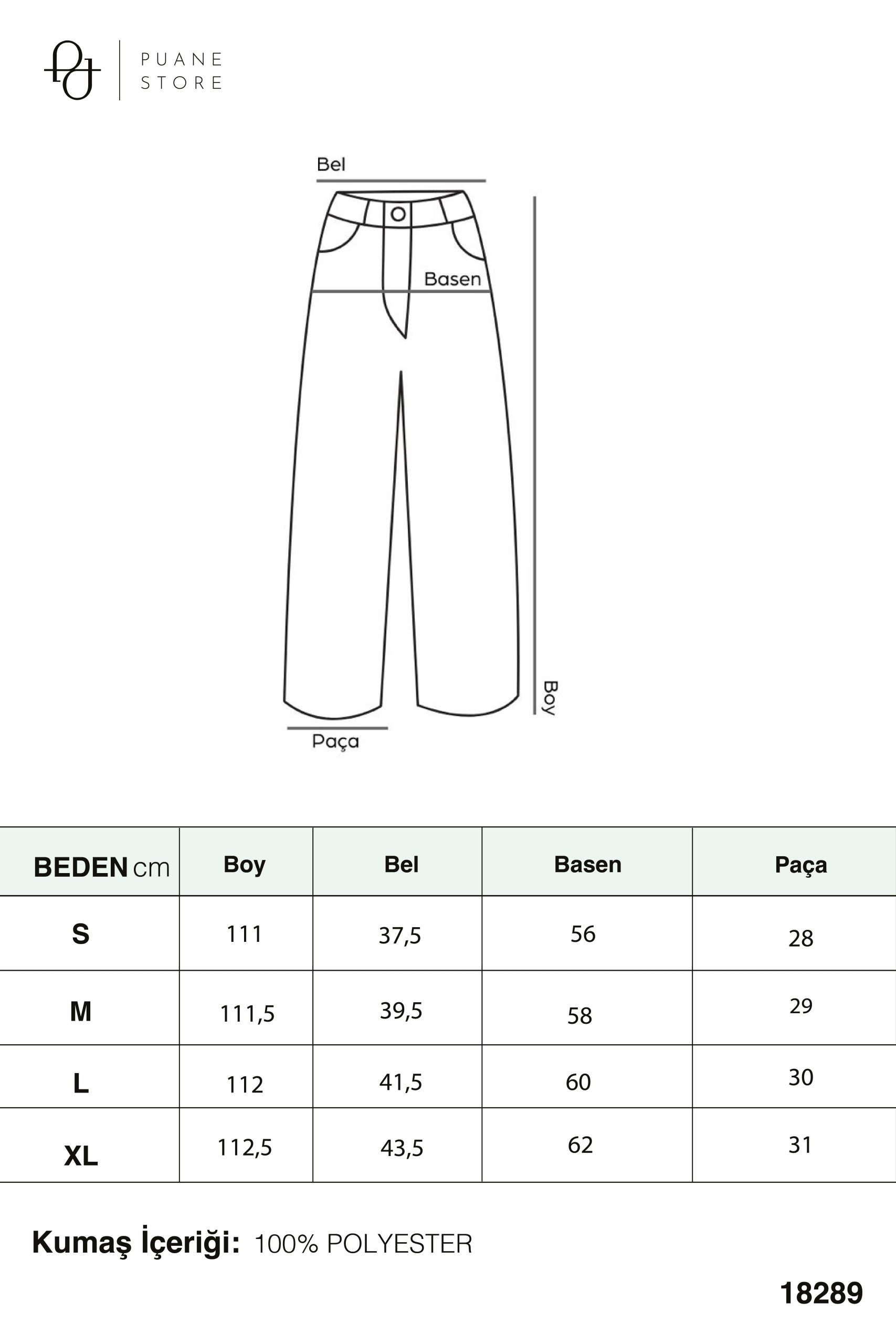 Açıklama : Yüksek bel tasarımıyla beli toparlayan bu geniş paça kumaş pantolon, konforlu ve şık bir kullanım sunar. Akıcı kumaş yapısı gün boyu rahat hareket imkânı sağlarken, geniş paça kesimi modern ve zarif bir siluet oluşturur. Günlük kombinlerden ofis stiline kadar birçok farklı kullanım için ideal, zamansız bir parçadır.