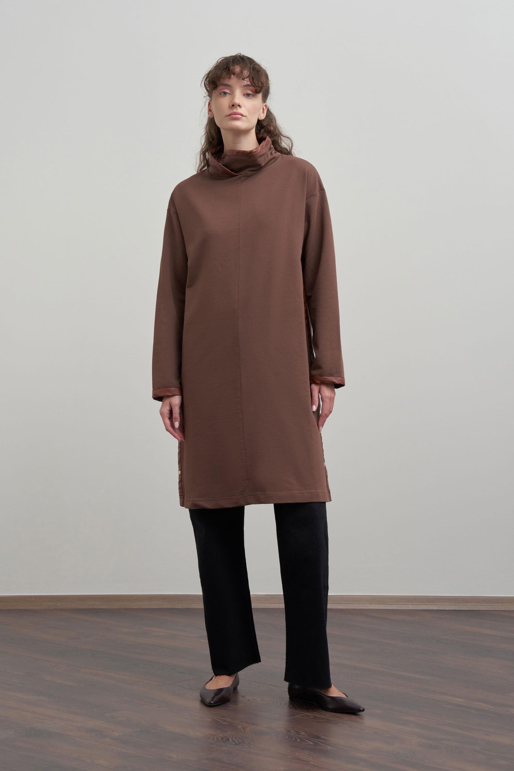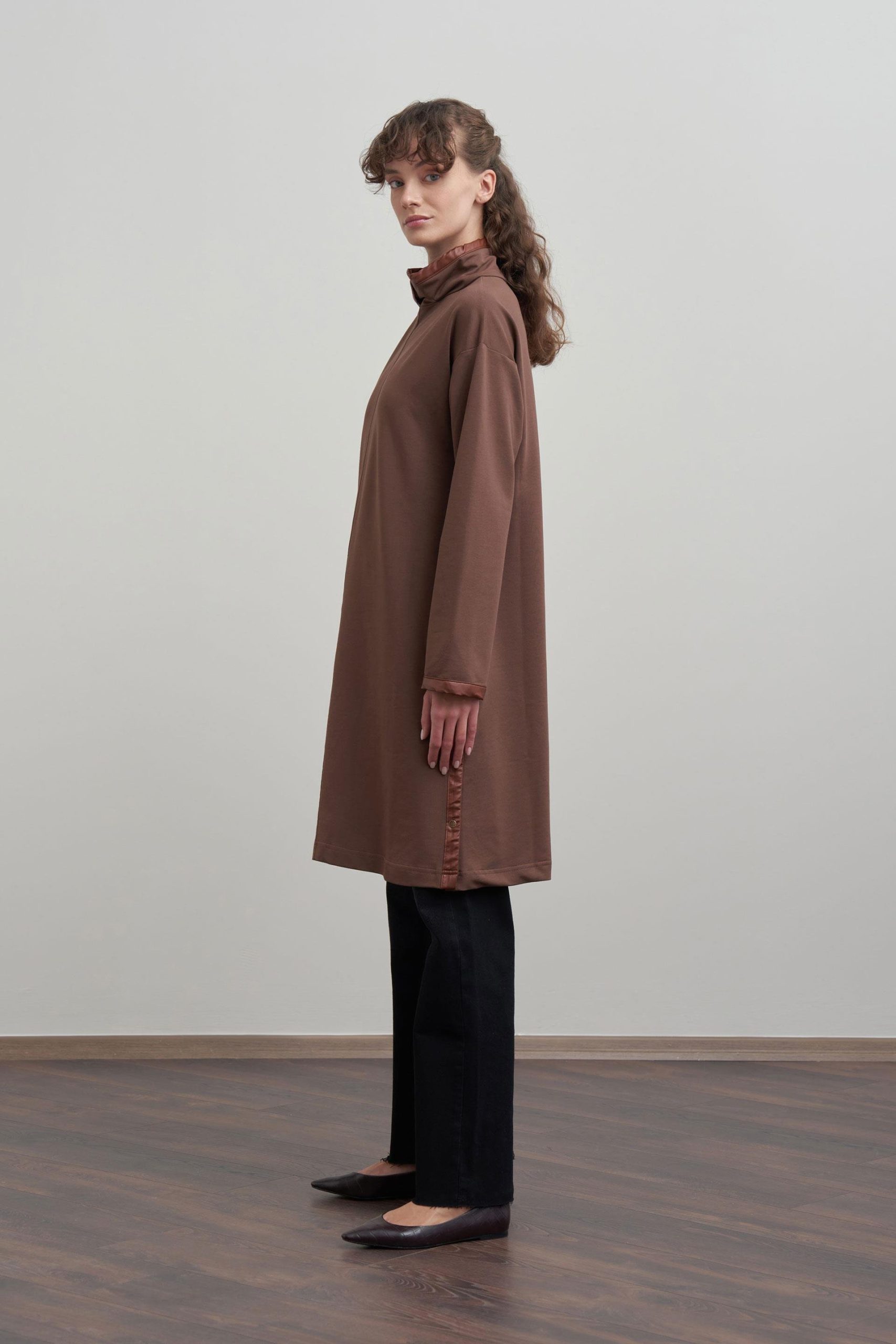 Kahve-Deri Biyeli Pamuklu Uzun Tunik