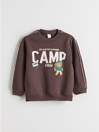 Kahverengi Baskılı Erkek Çocuk Kalın Sweatshirt