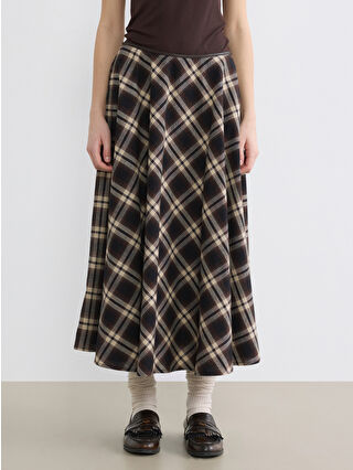 Kahverengi Beli Fermuarlı Ekose A Kesim Etek