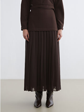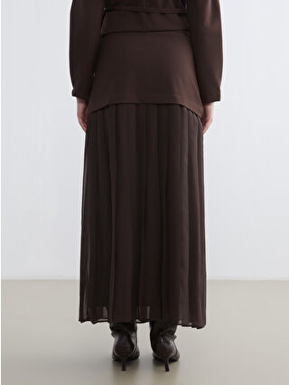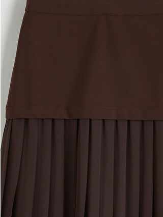 Kahverengi Beli Lastikli Pileli Etek