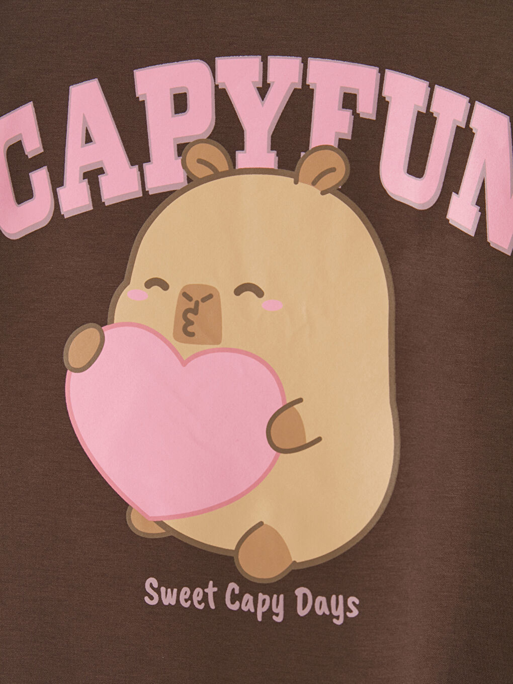 Kahverengi Capyfun Baskılı Kız Çocuk Tişört Ve Eşofman Alt