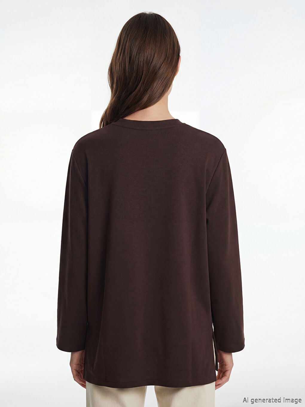 Kahverengi Dik Yaka Oversize Kadın Sweatshirt Tunik