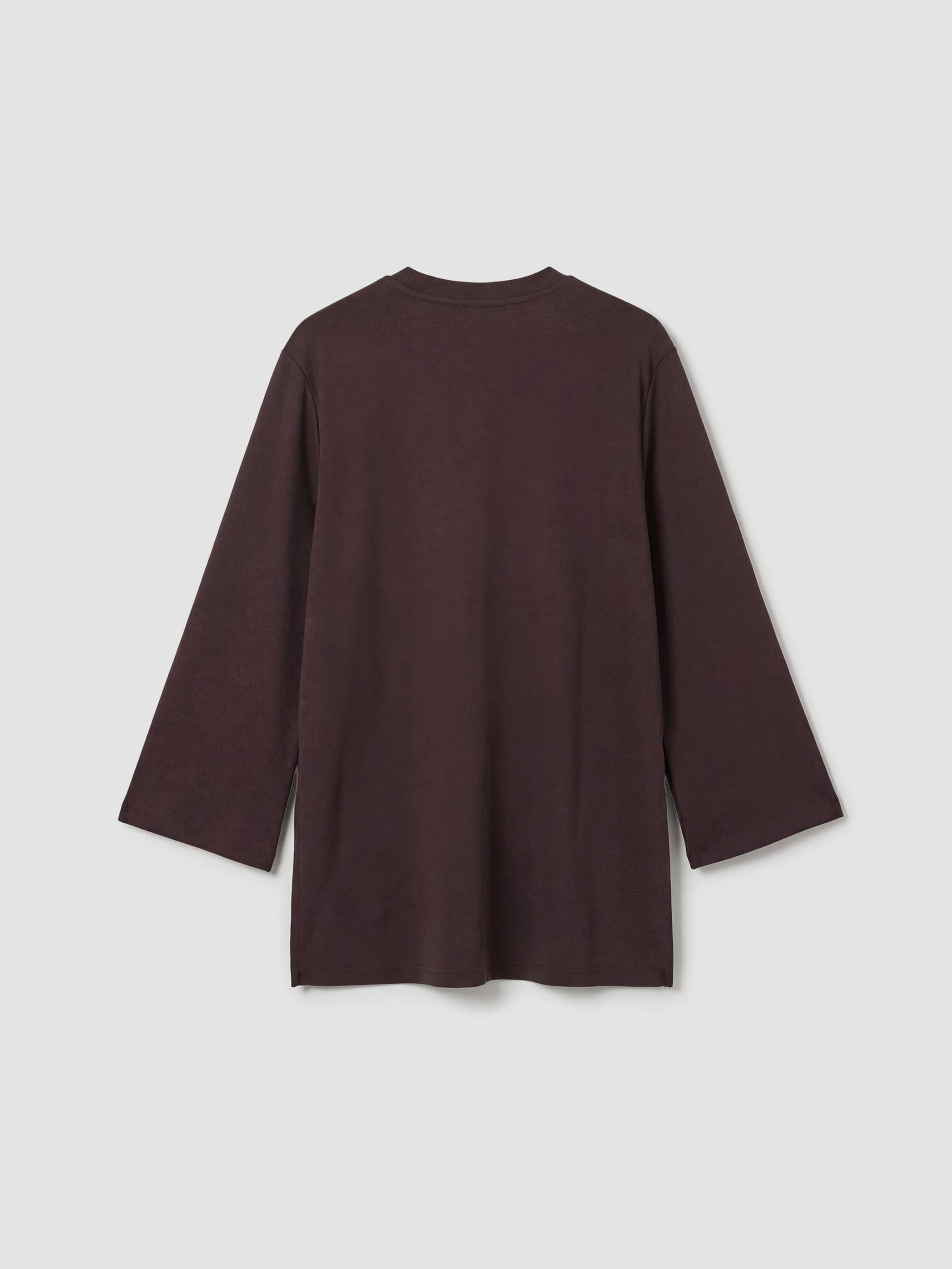 Bisiklet yaka, önden kesik detaylı, İspanyol kol formuna sahip, yanlardan yırtmaçlı rahat kesim pamuklu kumaştan sweatshirt.