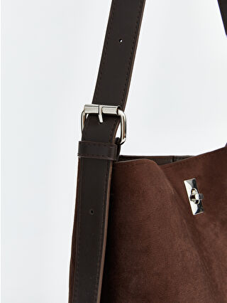 Kahverengi Süet Görünümlü Kadın Omuz Çantası