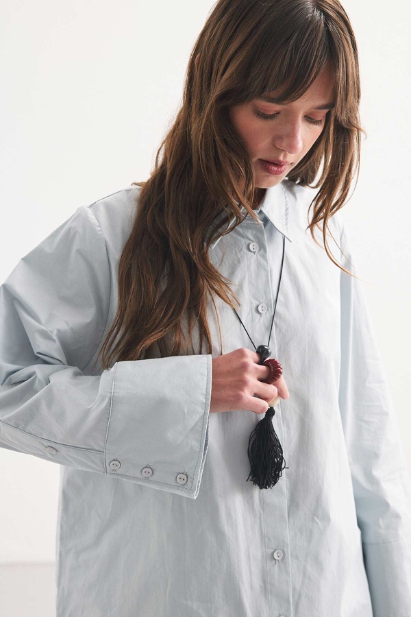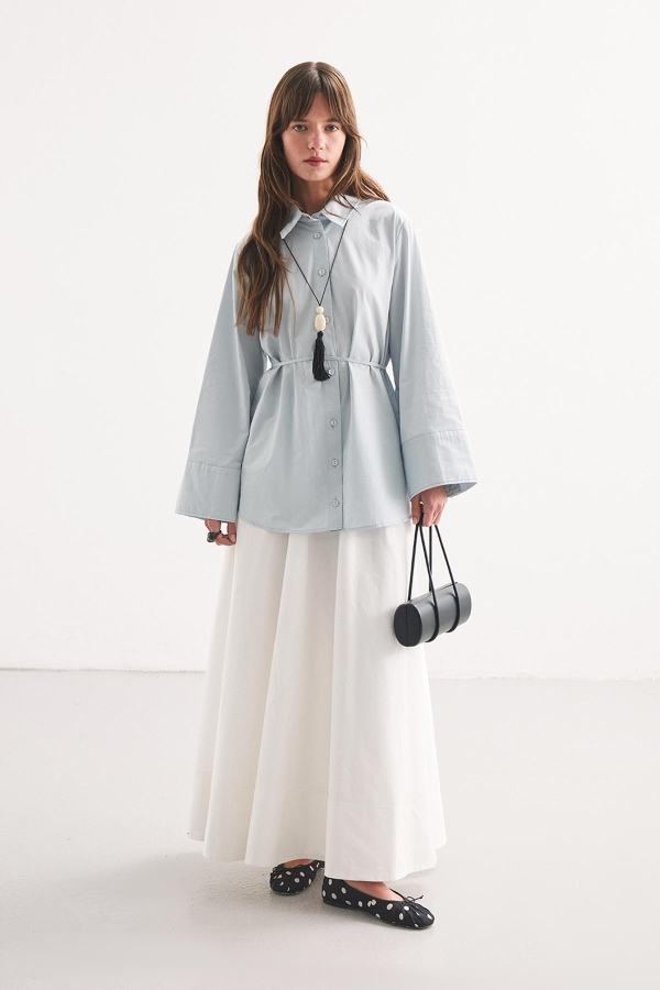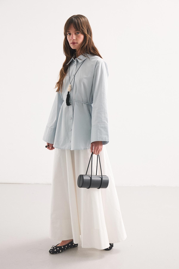 Kalın Manşetli Soft Mavi Gömlek