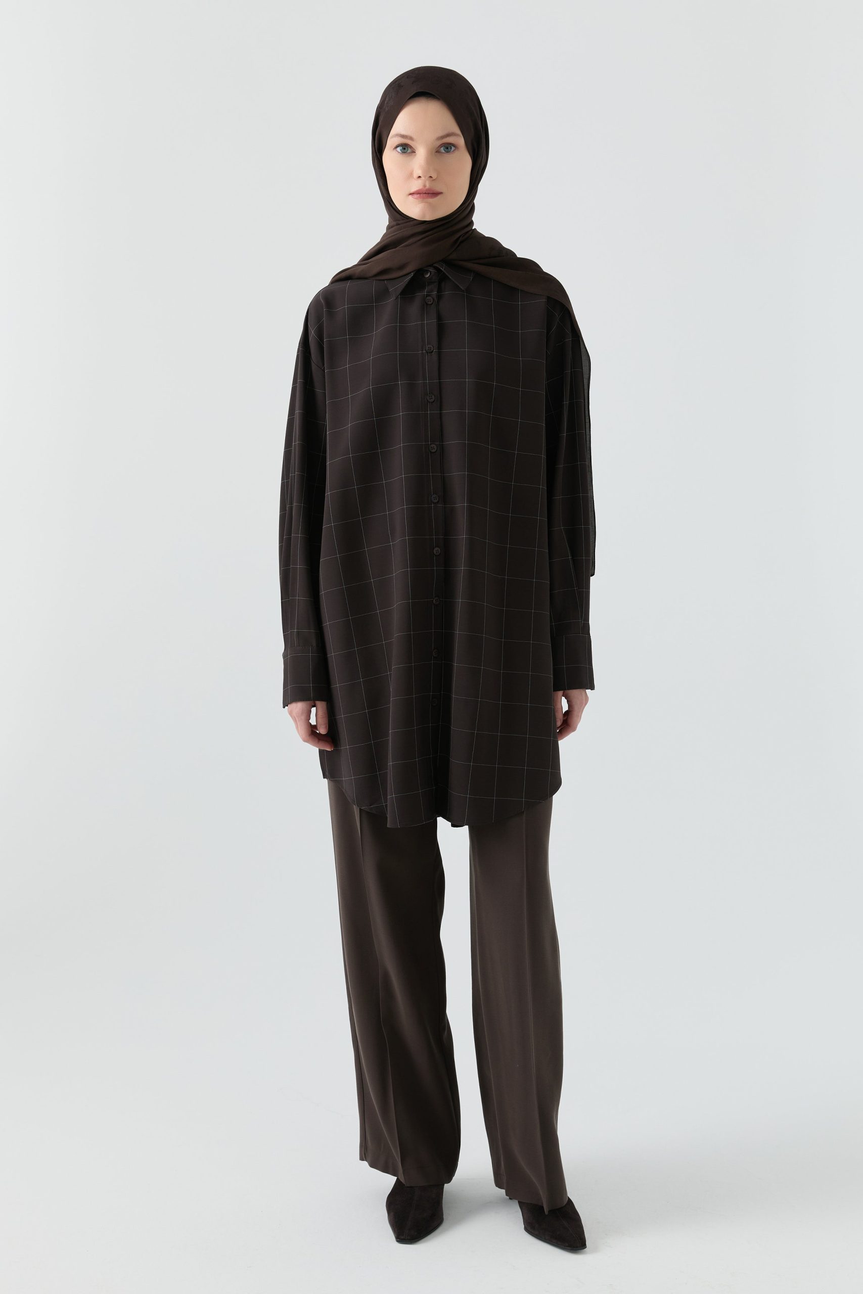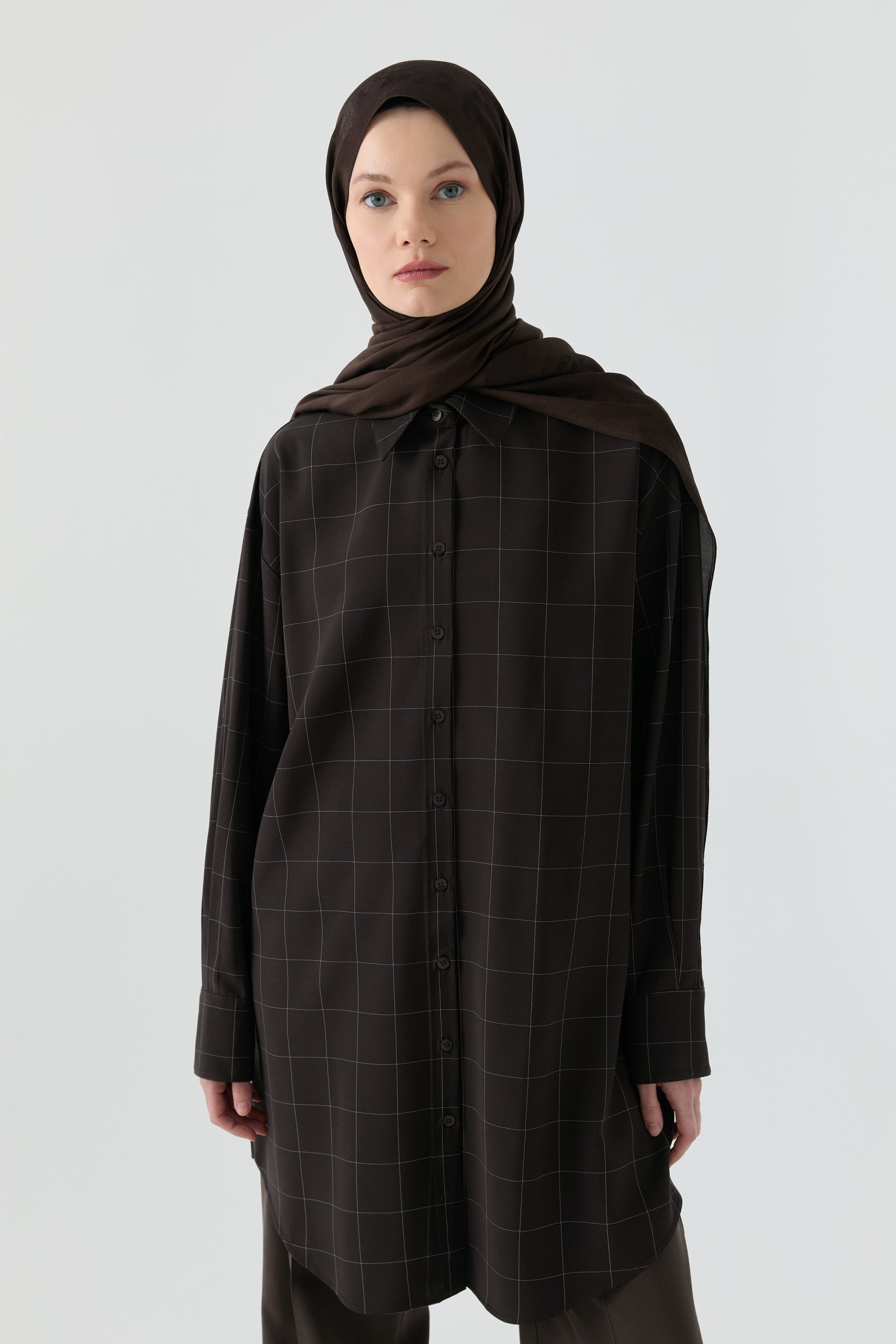 Kare Desenli Tunik – Acı Kahve