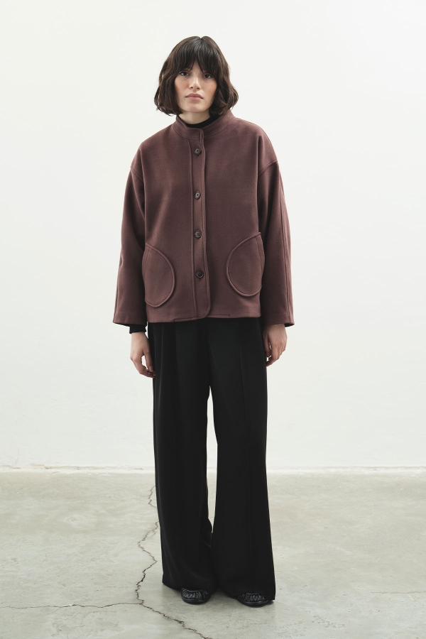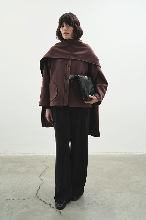 Dik yaka tasarımıyla modern ve güçlü bir duruş sunan bu kaban, sade çizgileri ve zarif formuyla şehir şıklığını sofistike bir seviyeye taşır. Yapısal kesimi silueti kusursuzca şekillendirirken, sıcak tutan dokusu mevsim geçişlerinde konfor sağlar.