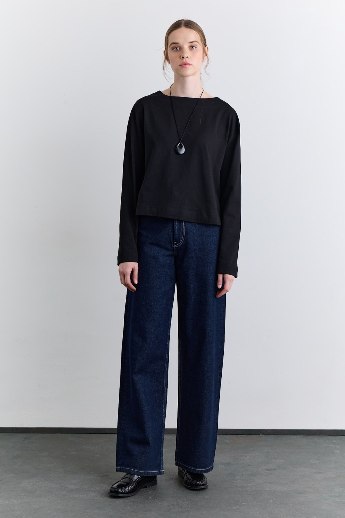 Kayık yaka, uzun kol, crop boy, normal kalıp.