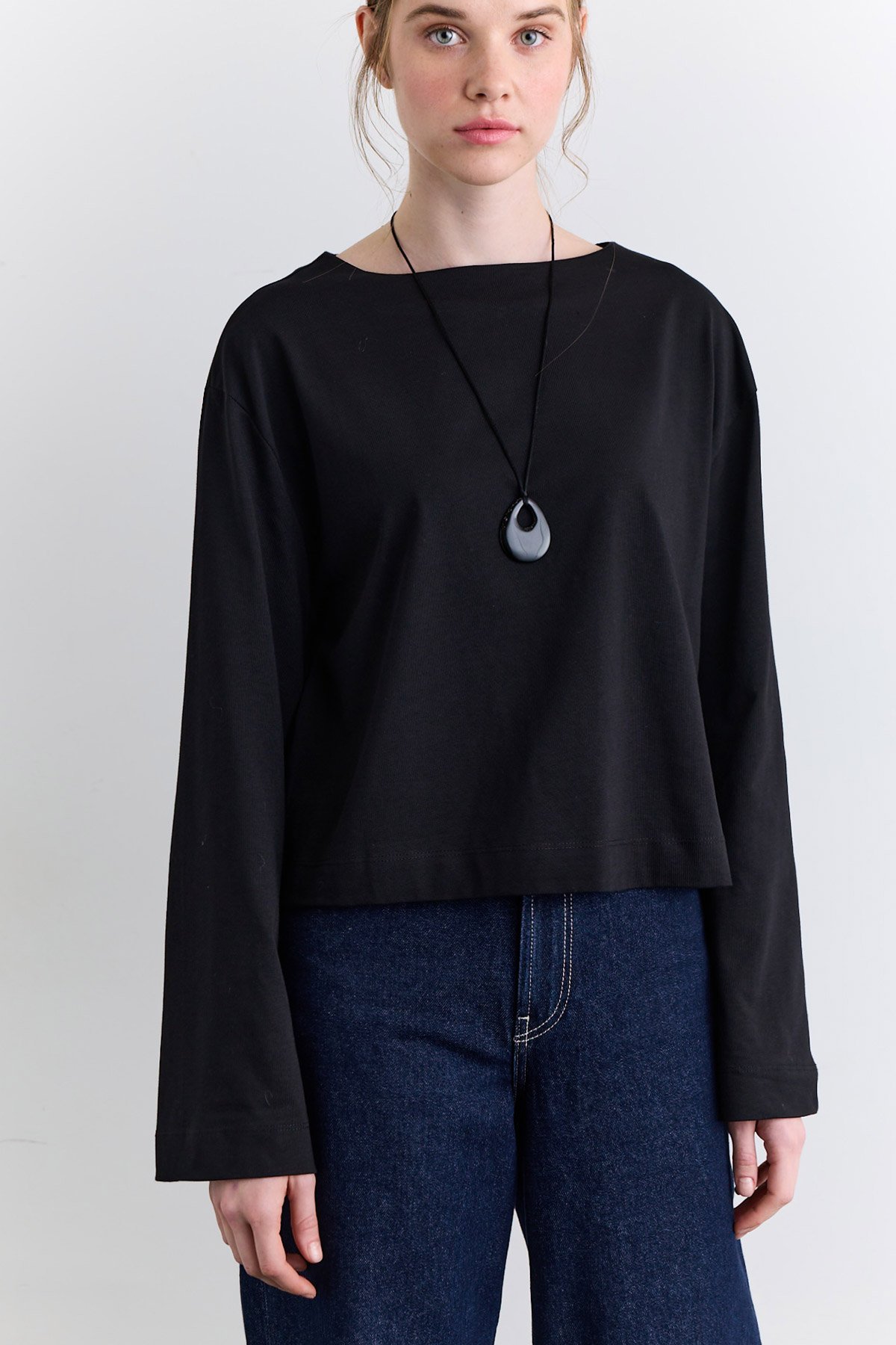 KAYIK YAKA UZUN KOL TSHIRT SİYAH