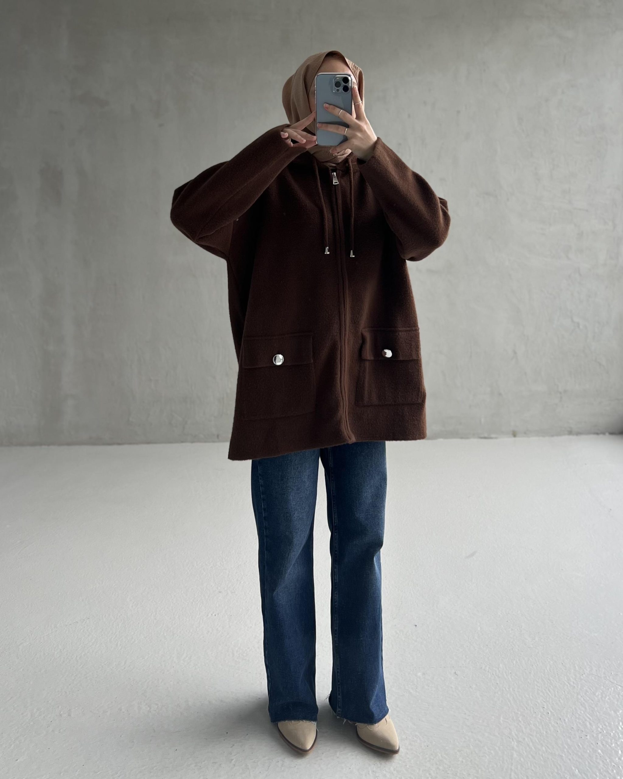 KEÇE KAPÜŞONLU CEKET Kahverengi