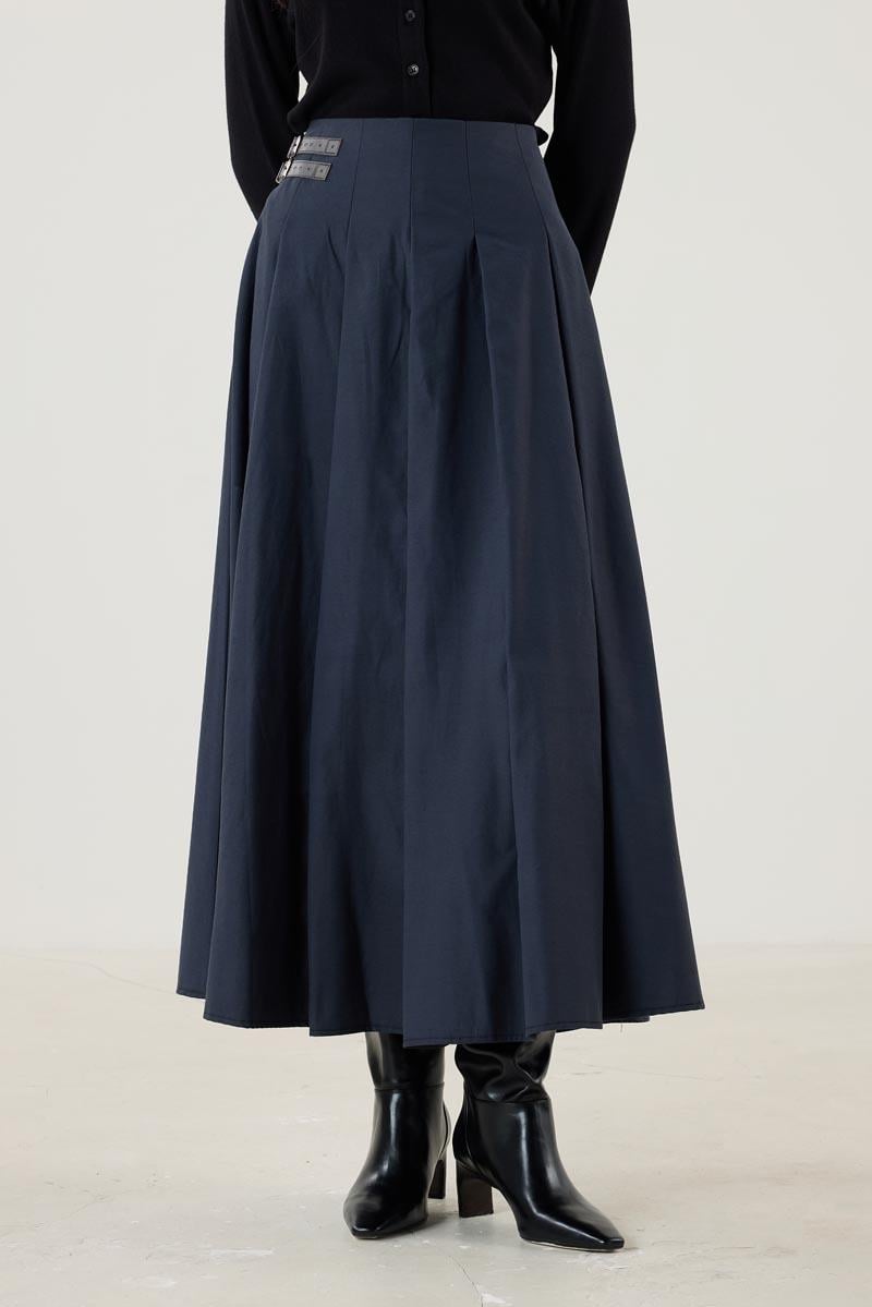 Kemer Aksesuarlı Pileli Etek Lacivert
