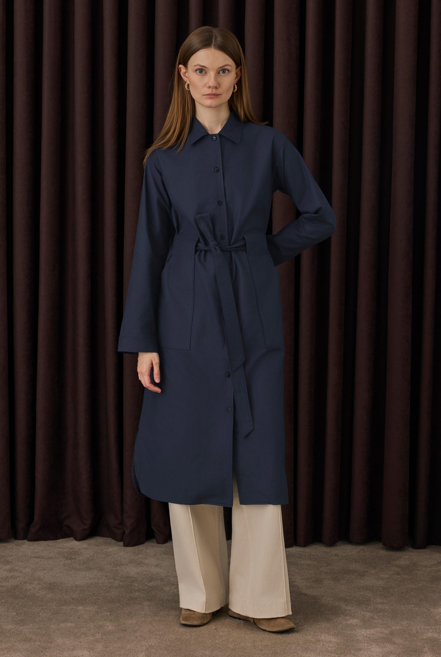 Kemer Detaylı Uzun Gömlek Lacivert