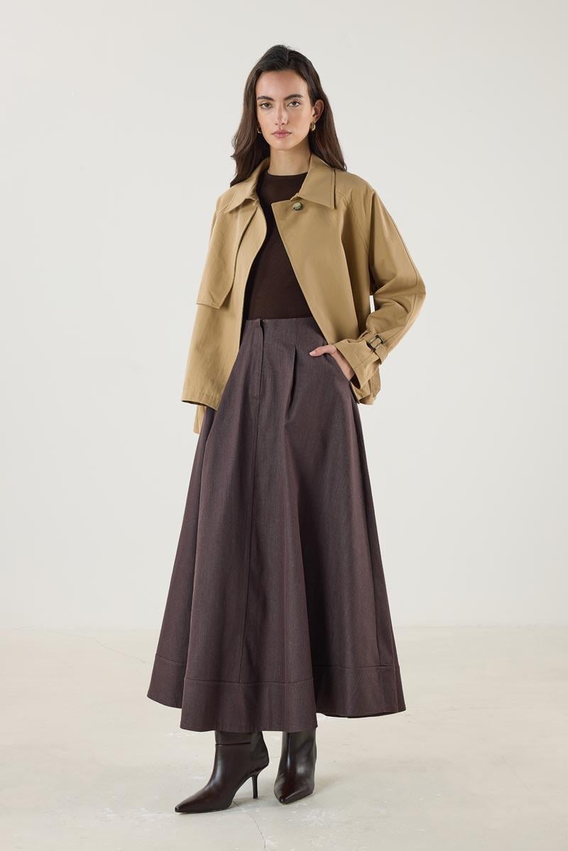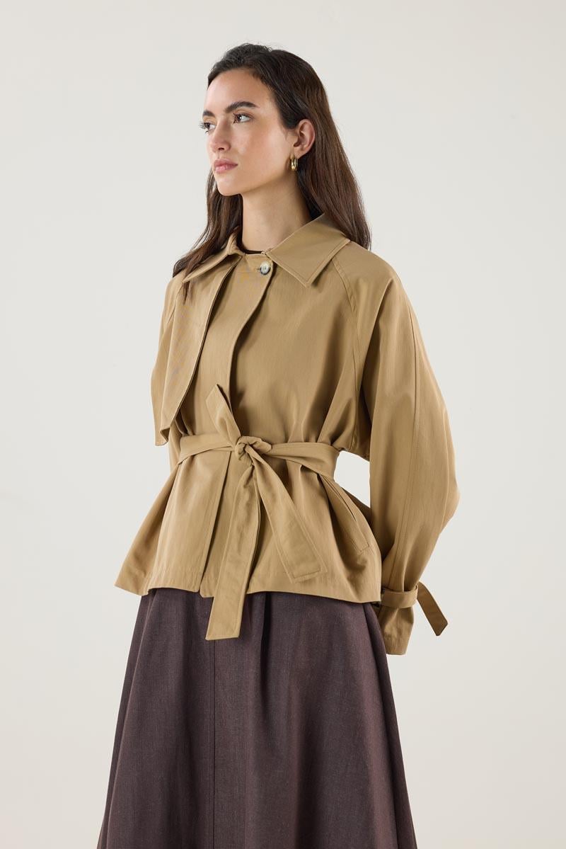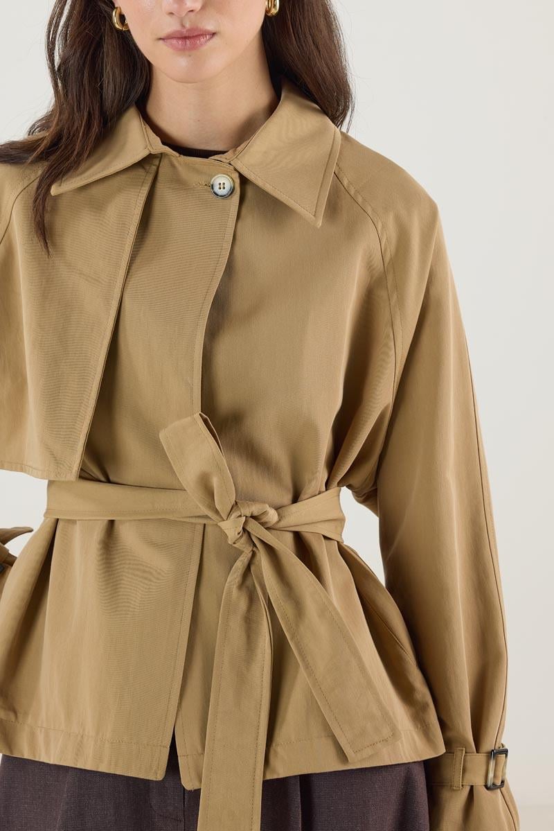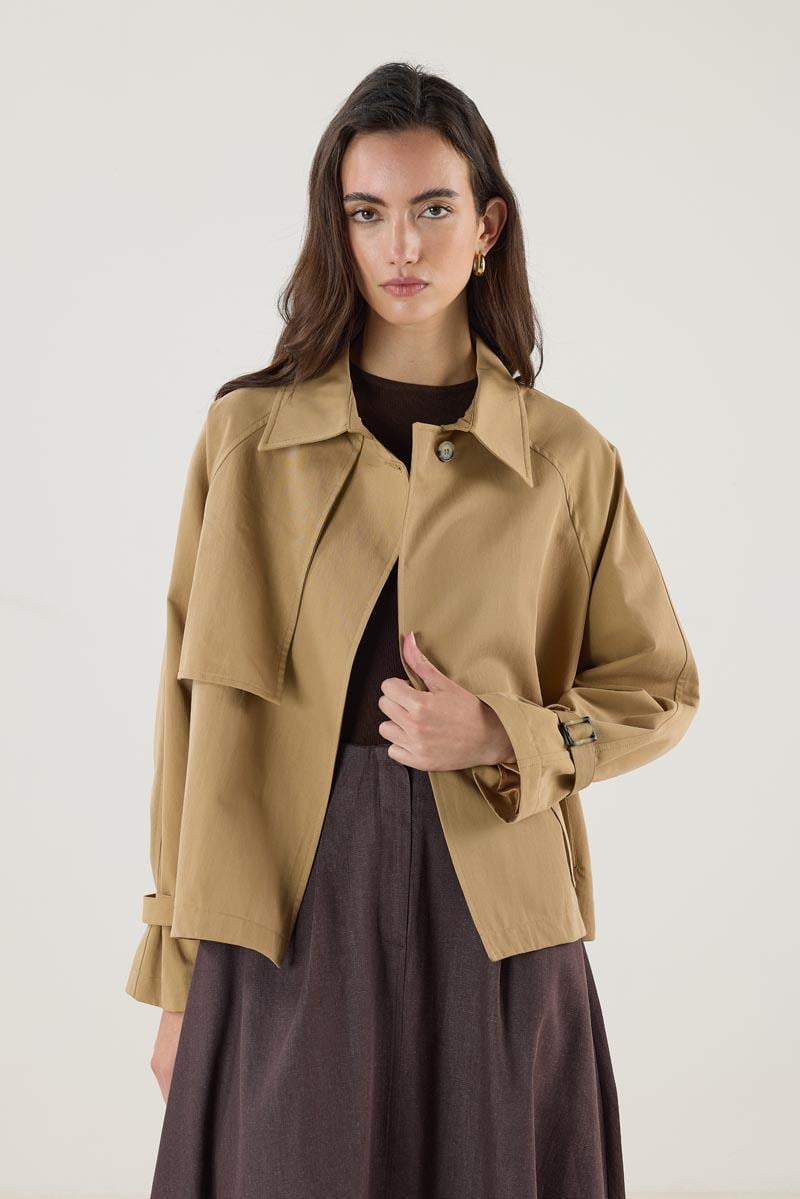 Kemerli Cepli Kısa Trençkot Camel