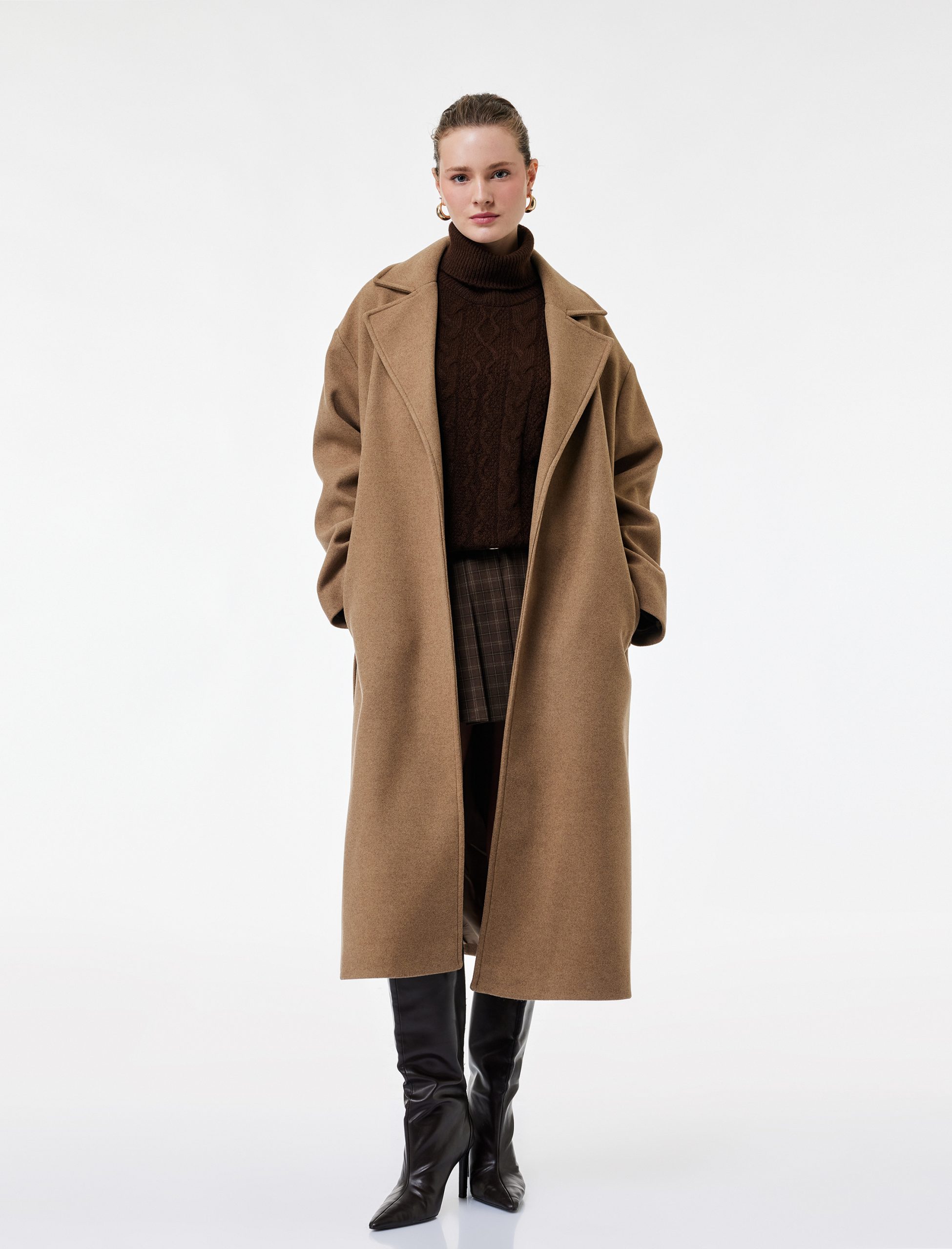 Kemerli Uzun Kaşe Kaban Cepli Uzun Kollu
