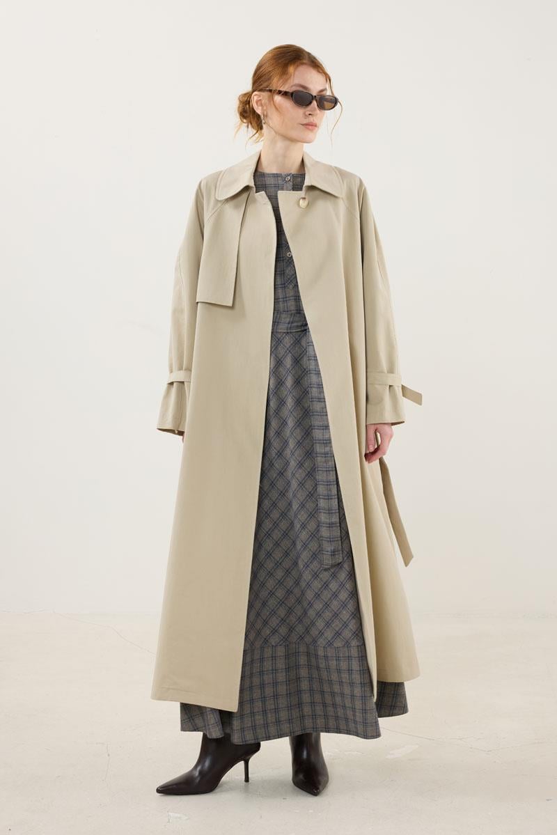 Kemik Tokalı Trençkot Kum